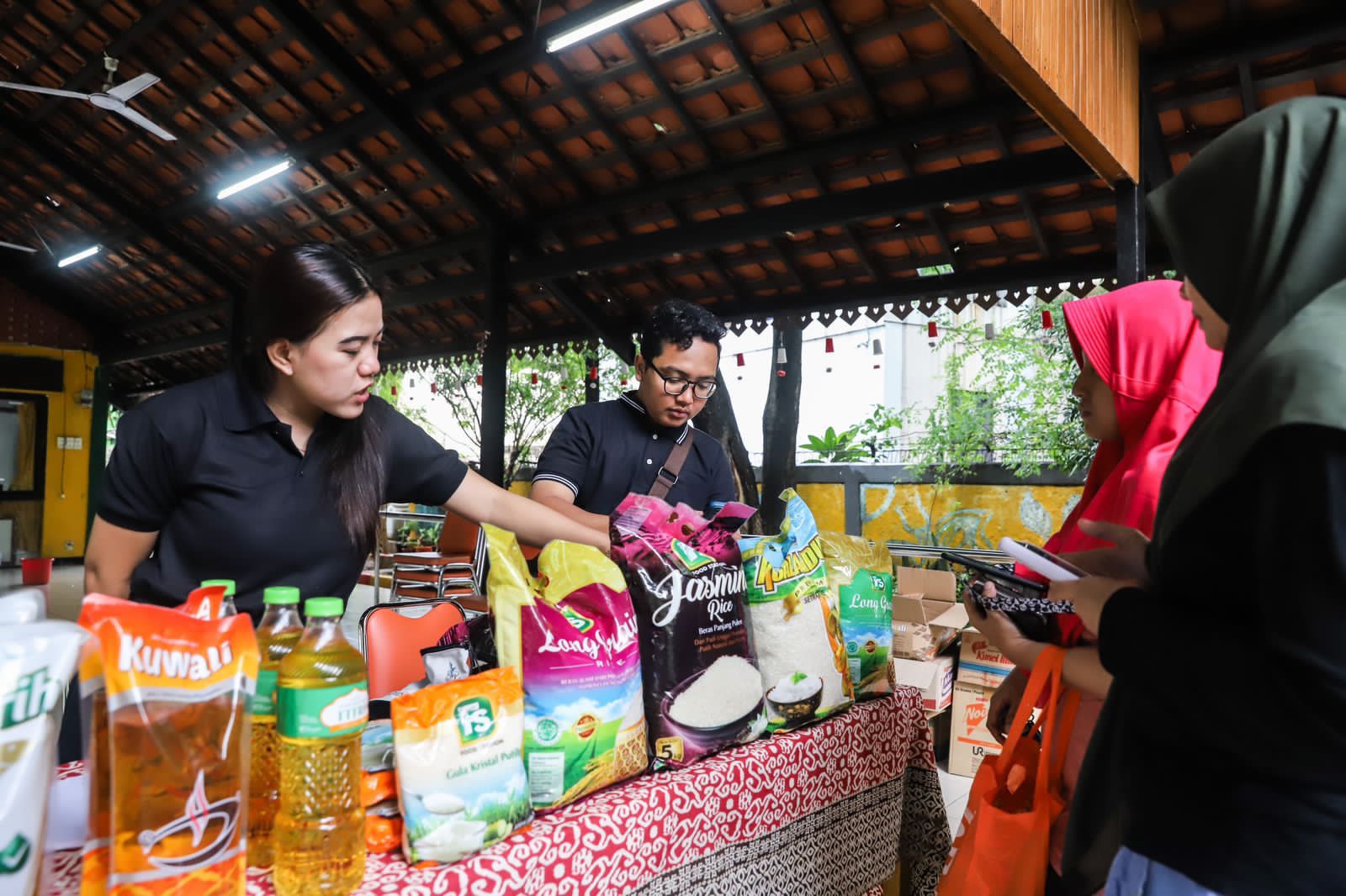 Perumda Pasar Jaya menggelar bazar pangan murah, yang kali ini berada di RPTRA Hati Suci, Kelurahan Kampung Bali, Kecamatan Tanah Abang, Selasa (21/2).