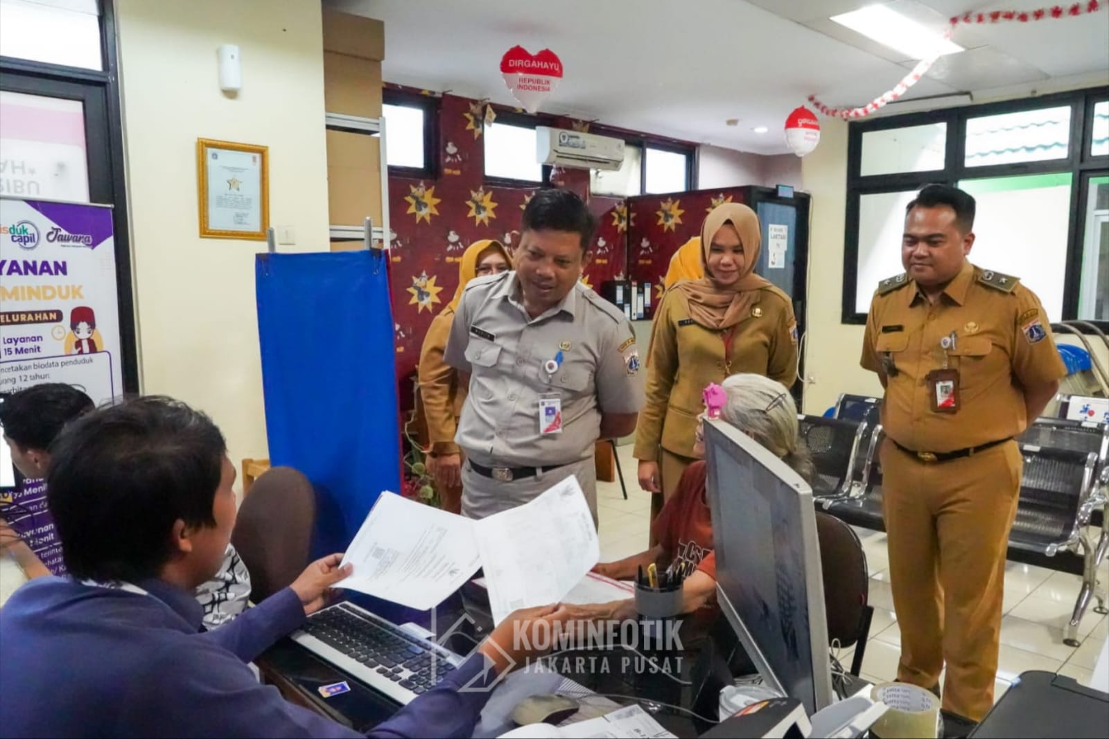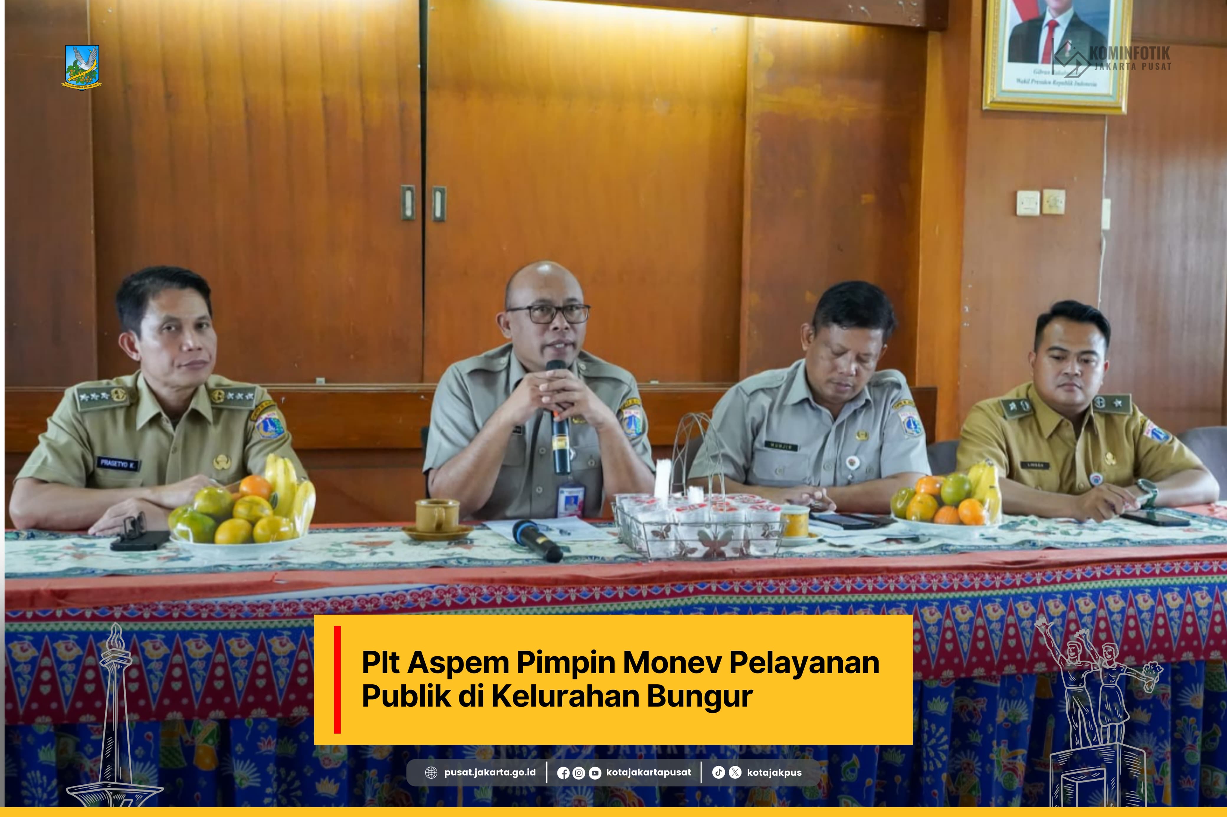 Pelaksana Tugas (Plt) Asisten Pemerintahan Kota Administrasi Jakarta Pusat Bakwan Ferizan Ginting melakukan monitoring dan evaluasi (monev) pelayanan publik di Kantor Kelurahan Bungur, Kecamatan Senen, Selasa (8/7).