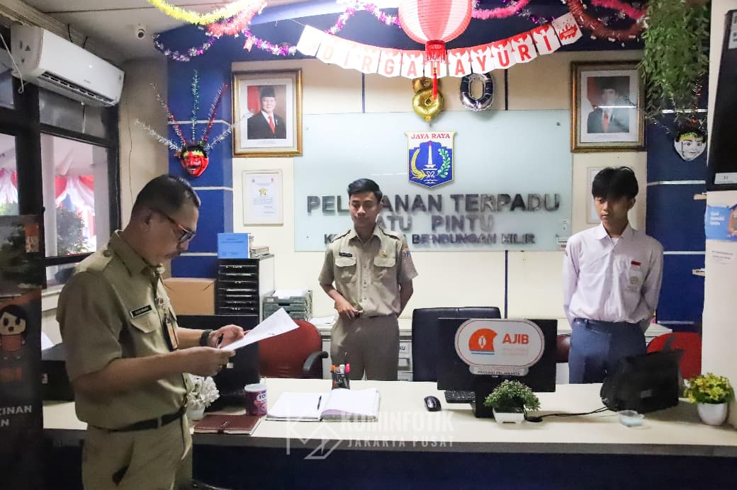 Plt Kepala Bagian (Kabag) Pemerintahan Setko Administrasi Jakarta Pusat Munjir Munaji bersama tim melakukan kegiatan monitor dan evaluasi (monev) pelayanan publik, administratif kepegawaian serta kinerja, di Kantor Kelurahan Bendungan Hilir (Benhil), Kecamatan Tanah Abang, Selasa (12/8).