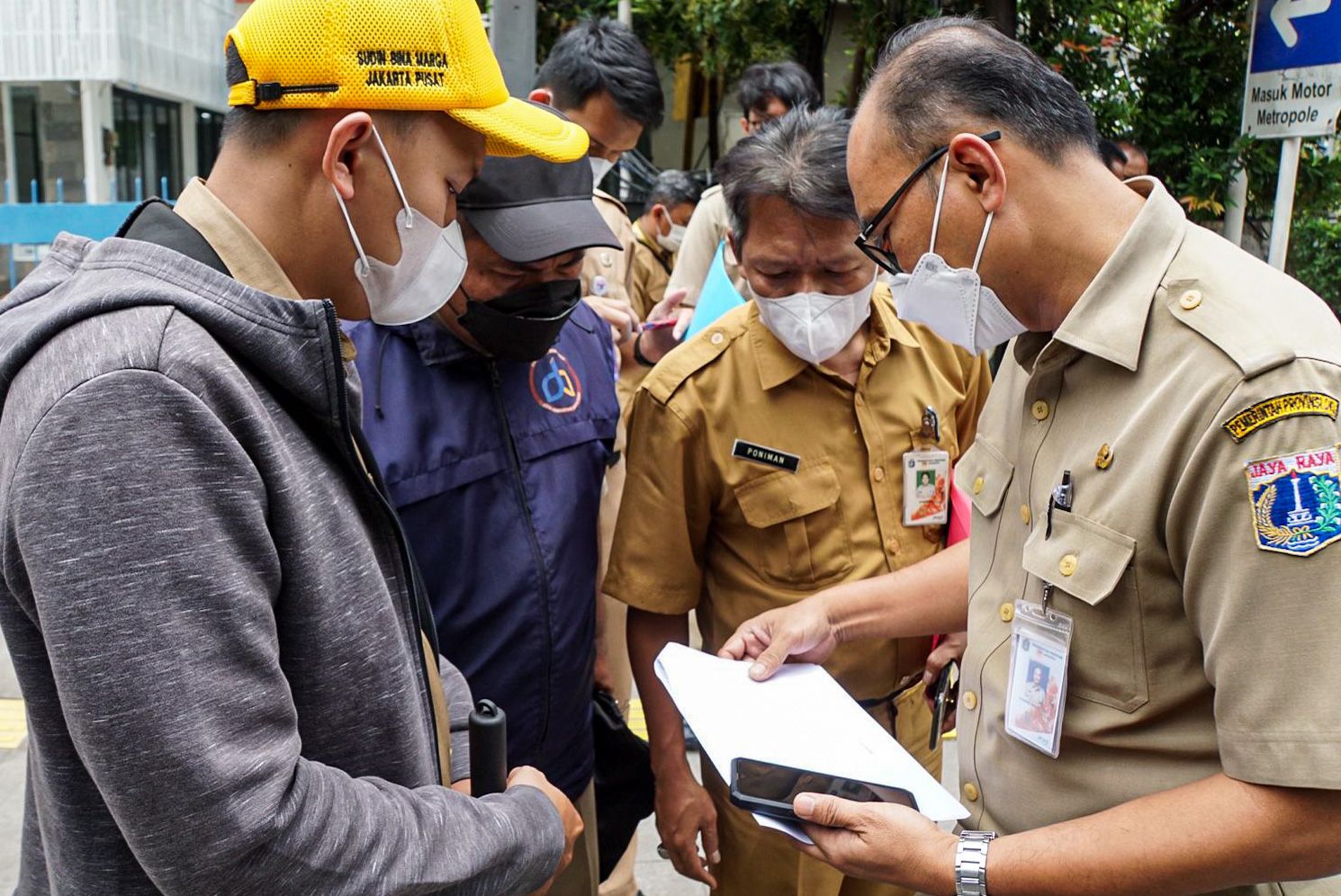 Pemerintah Kota (Pemkot) Administrasi Jakarta Pusat melalui Tim Pengendalian dan Pengawasan Wilayah (TP3W) melakukan penelitian fisik kewajiban fasilitas sosial fasilitas umum (fasos-fasum) Metropole PT Bioskop di Jakarta Metropole, Kelurahan Pegangsaan, Kecamatan Menteng, Senin (20/2).