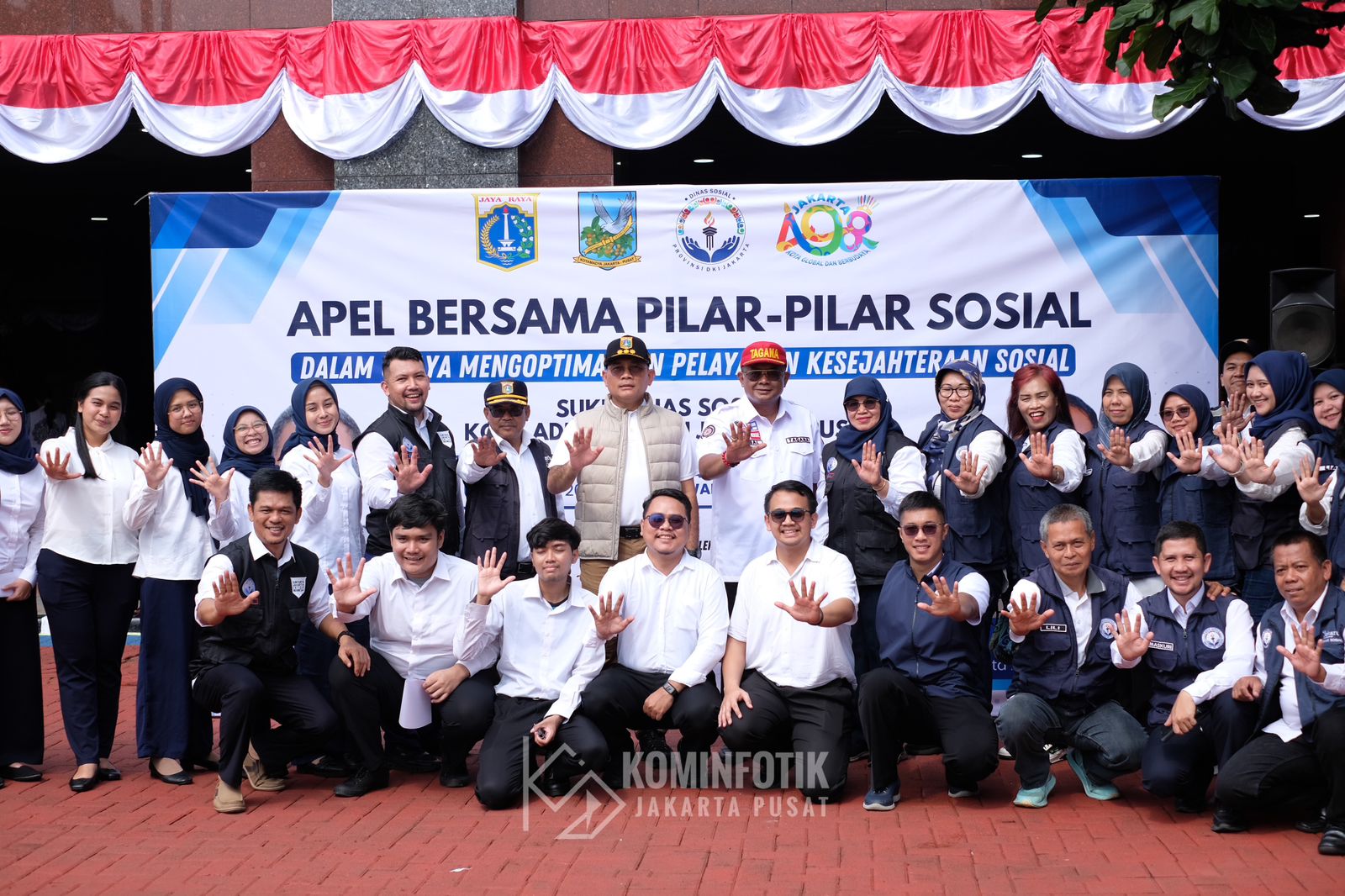 Suku Dinas Sosial (Sudinsos) Kota Administrasi Jakarta Pusat menggelar apel gabungan bersama pilar-pilar sosial dalam upaya mengoptimalkan pelayanan kesejahteraan sosial.