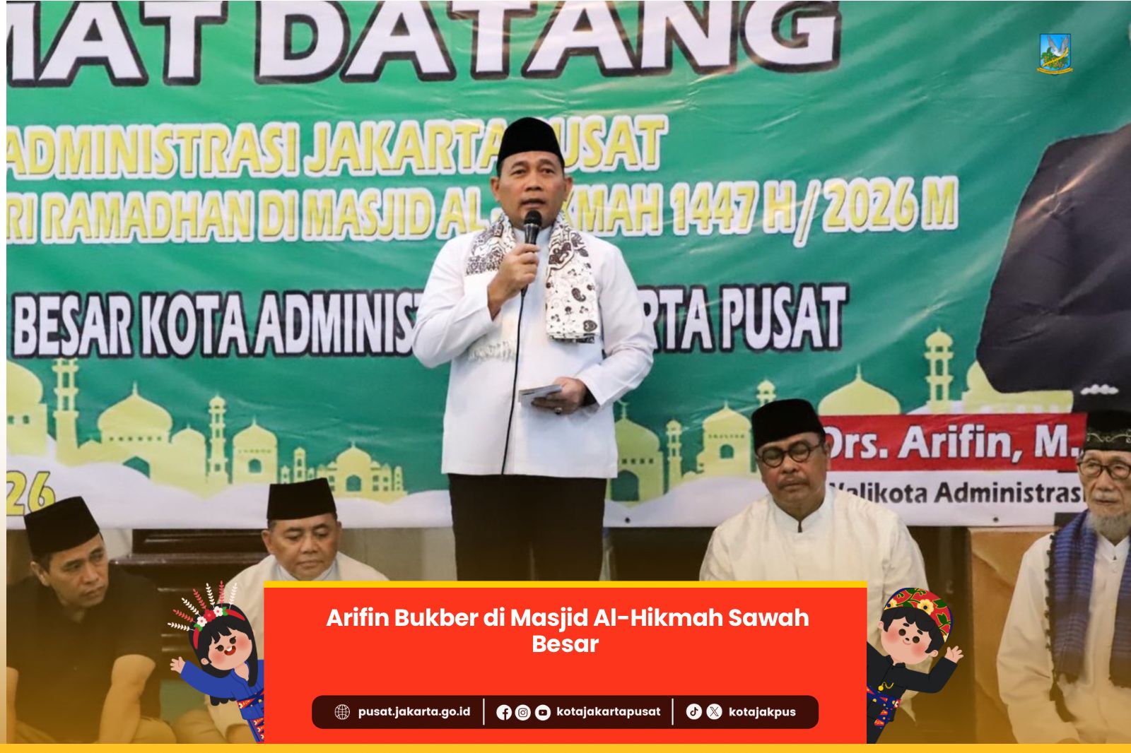 Pemerintah Kota (Pemkot) Administrasi Jakarta Pusat menggelar buka puasa bersama dalam rangka Safari Ramadan di Masjid Al-Hikmah, Jl. Karang Anyar Utara RT 001/09, Kelurahan Karang Anyar, Kecamatan Sawah Besar, Senin (2/3).