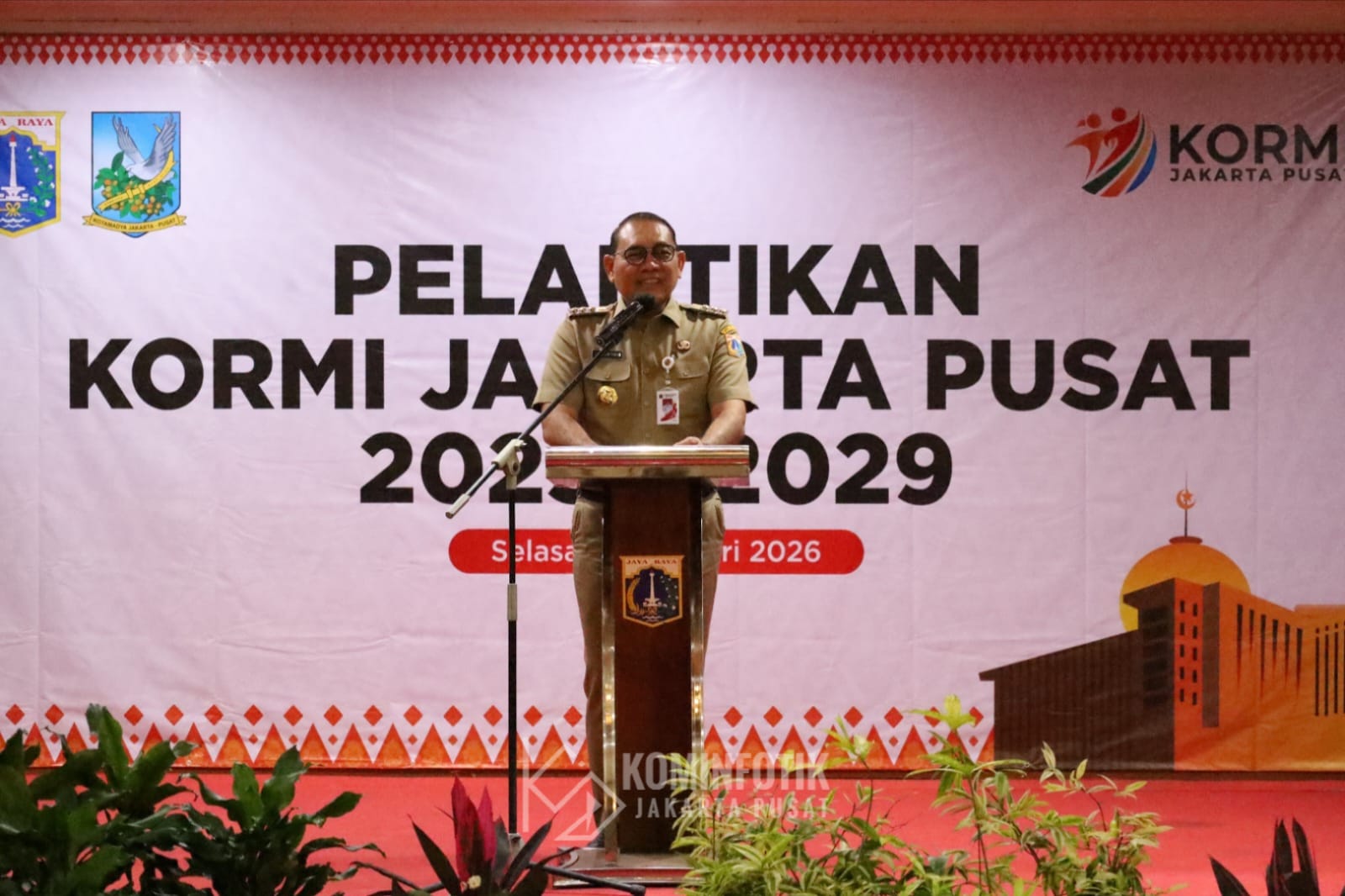 Wali Kota Administrasi Jakarta Pusat Arifin menghadiri pengukuhan Pengurus Komite Olahraga Masyarakat Indonesia (KORMI) Jakarta Pusat periode 2025-2029 di Ruang Serbaguna Utama kantor wali kota setempat, Selasa (3/2).