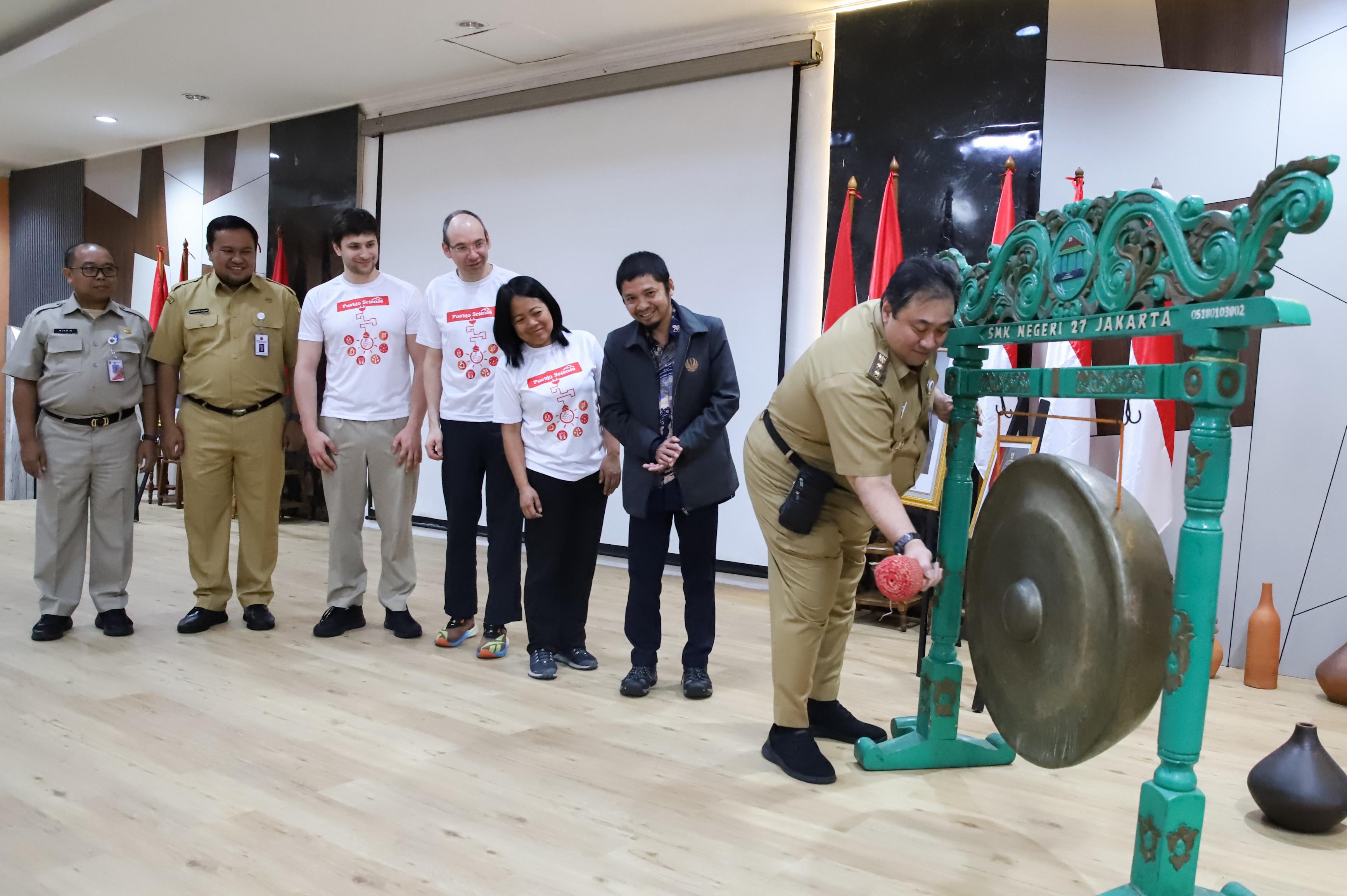 Asisten Perekonomian dan Pembangunan (Asekbang) Sekko Administrasi Jakarta Pusat Bakwan Ferizan Ginting melepas peserta Commuter Run 2024, di Stasiun BNI City, Kelurahan Kebon Melati, Kecamatan Tanah Abang, Jakarta Pusat, Minggu (8/9).