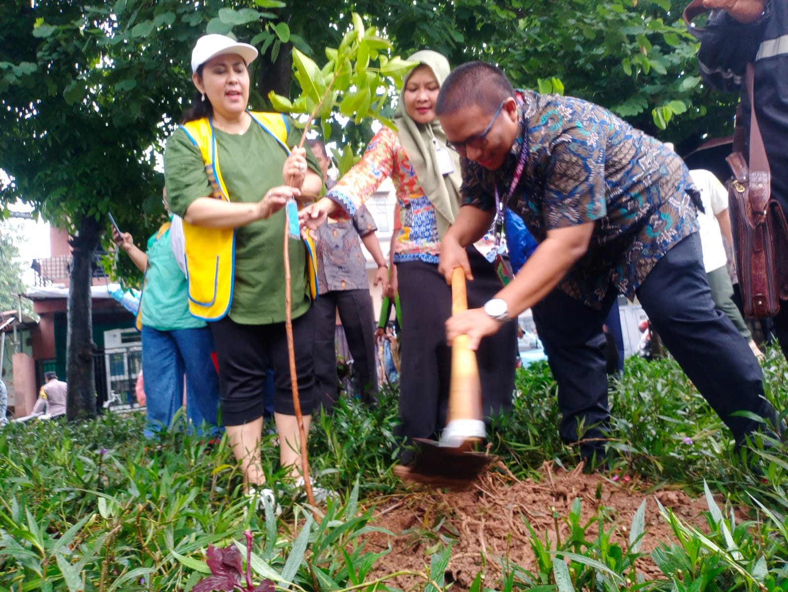 Jajaran Kelurahan Tanah Tinggi Tanam Pohon Produktif di Sisi Kali Sentiong