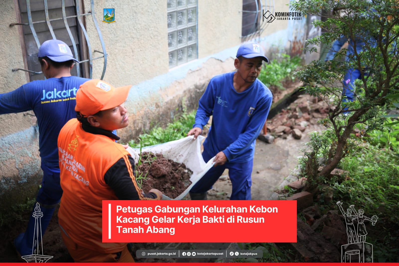 Petugas Gabungan Kelurahan Kebon Kacang Gelar Kerja Bakti di Rusun Tanah Abang