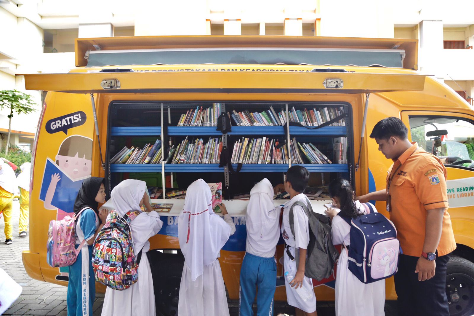 Mobil Perpustakaan Keliling Hadir di SDN Pasar Baru 11