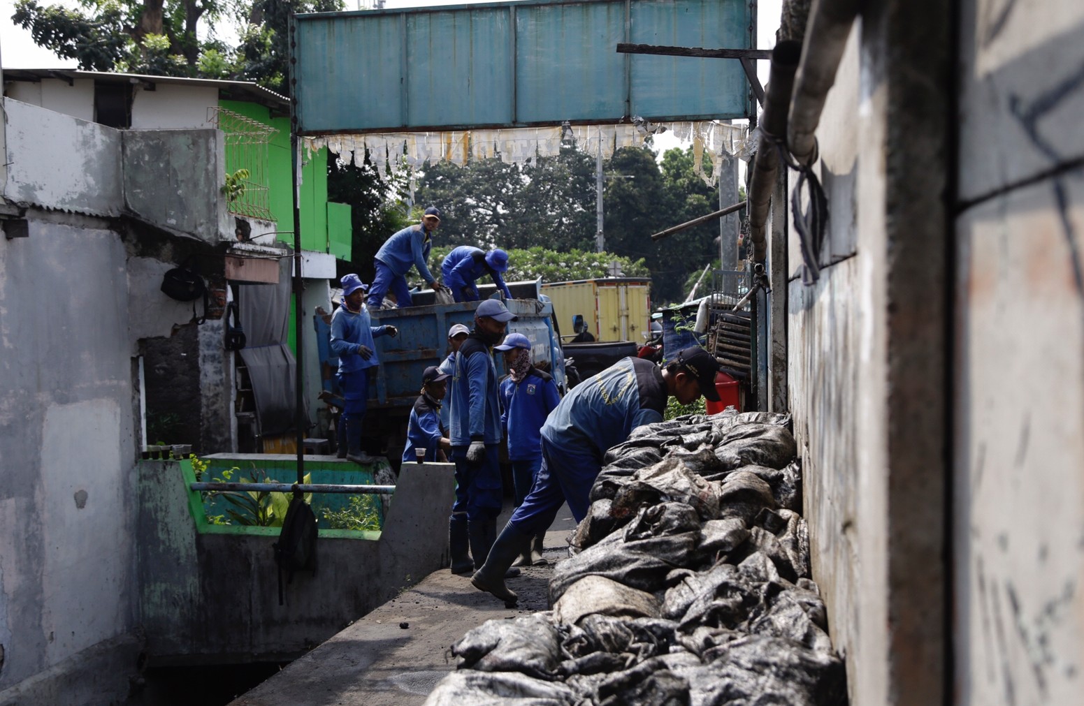 Petugas SDA Kuras Saluran Air di Jalan Petamburan II