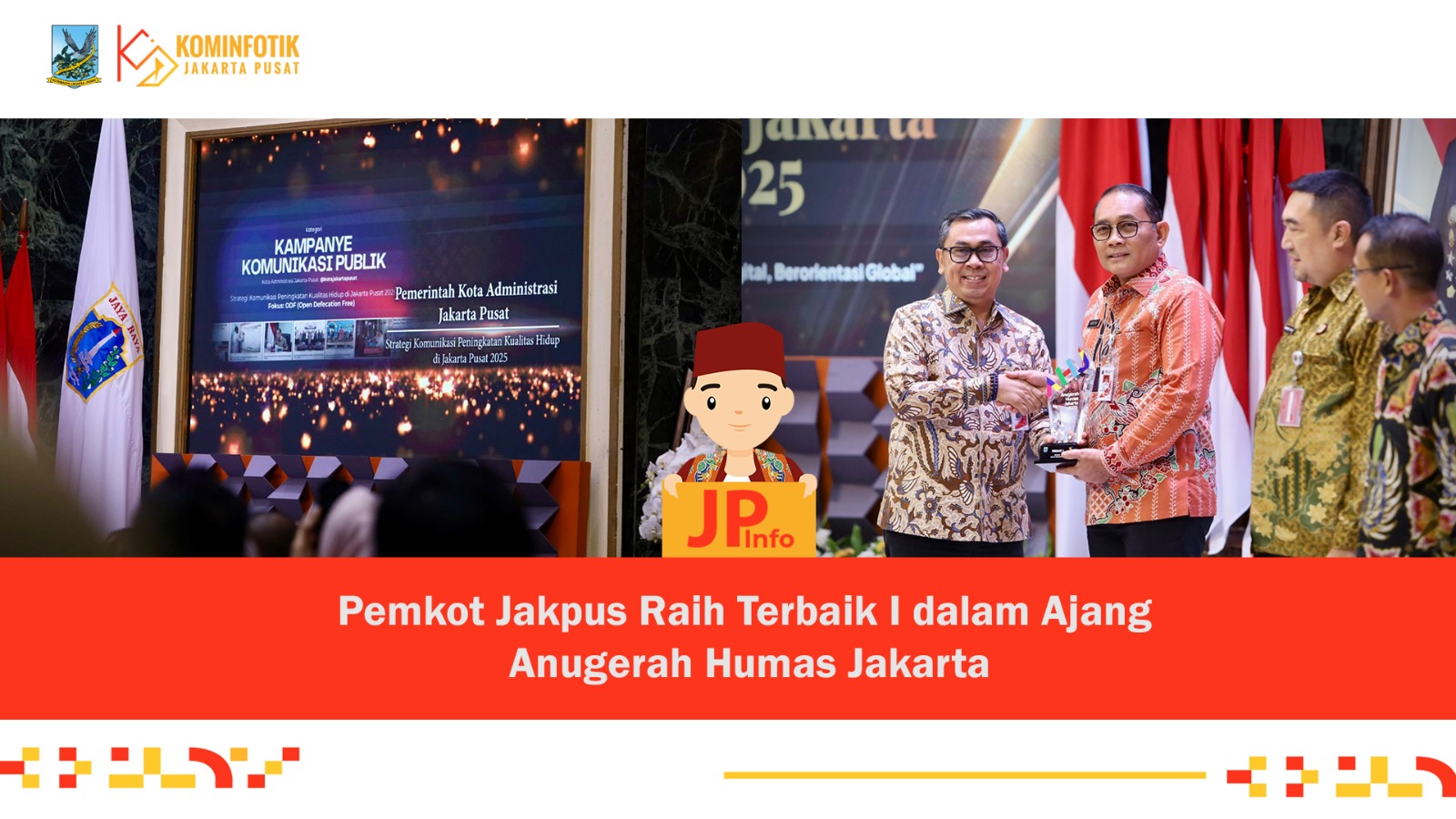 Pemerintah Kota Administrasi Jakarta Pusat meraih penghargaan sebagai 10 Kabupaten/Kota dengan persentase tertinggi pemenuhan kecukupan darah.