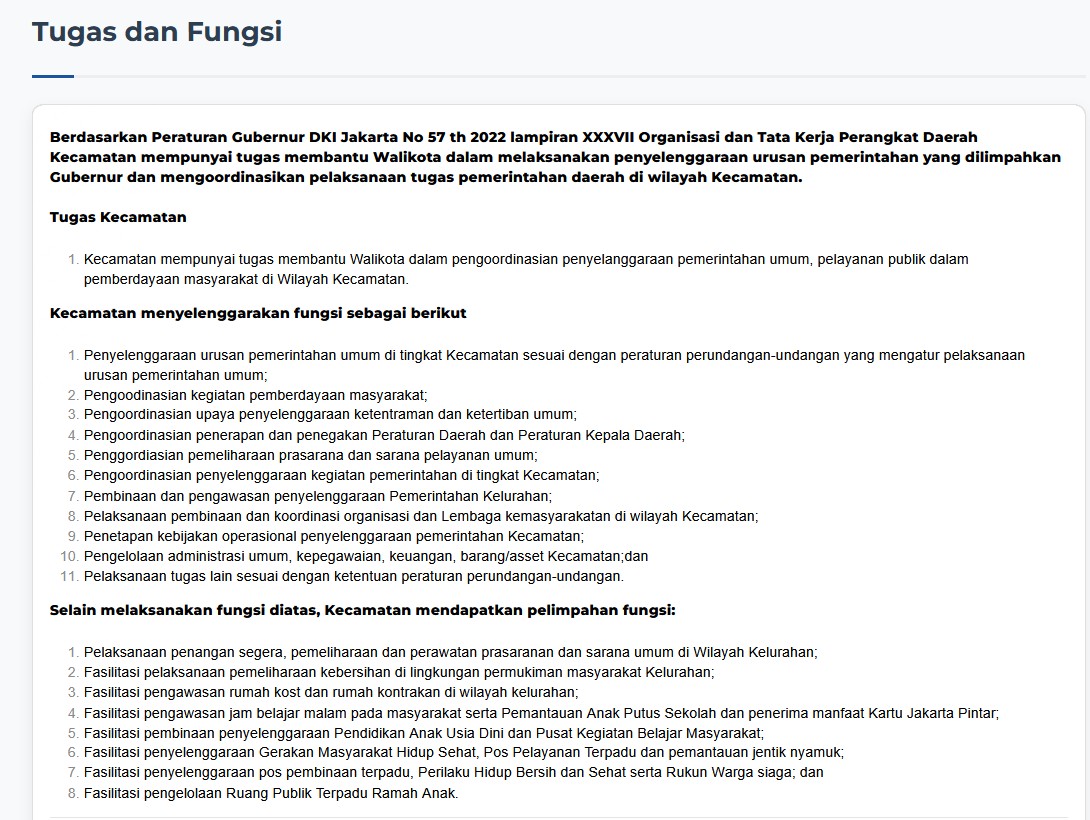 Tugas dan Fungsi Kecamatan Senen