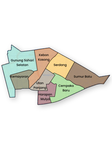 seluas 725,36 Ha dibagi menjadi 8 Kelurahan dengan jumlah RW. 77 dan jumlah RT.