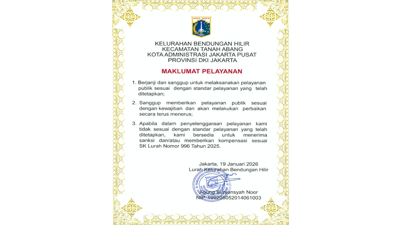 MAKLUMAT PELAYANAN1. Berjanji dan sanggup untuk melaksanakan pelayanan publik sesuai dengan standar pelayanan yang tela ditetapkan;2. Sanggup memberikan pelayanan publik sesuai dengan kewajiban dan akan melakukan perbaikan secara terus menerus;3....