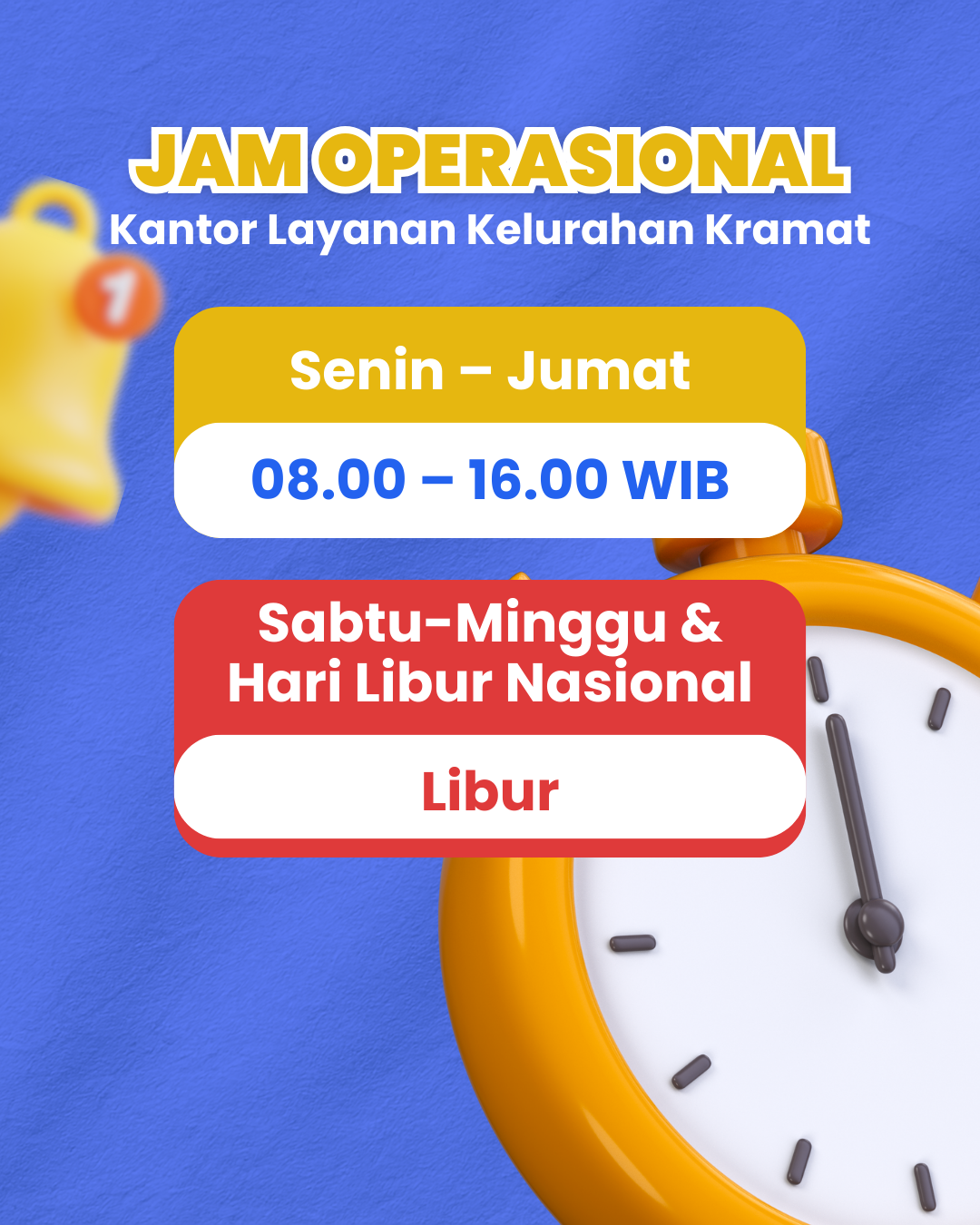 Jam Pelayanan Kelurahan Senin s.d Jumát Pukul 08.00 - 16.00 WIB