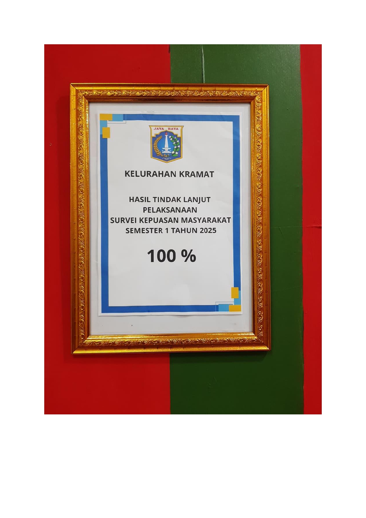 Indeks Kepuasan Masyarakat Kelurahan Kramat pada tahun 2025 dengan Nilai 100 % predikat A (mutu pelayanan Baik)