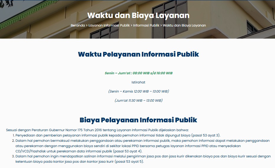 Waktu dan Biaya Layanan Informasi Informasi mengenai jadwal pelayanan serta ketentuan biaya layanan informasi publik di Kelurahan Serdang. Pelayanan informasi dilaksanakan pada hari kerja sesuai jam operasional yang telah ditetapkan,...