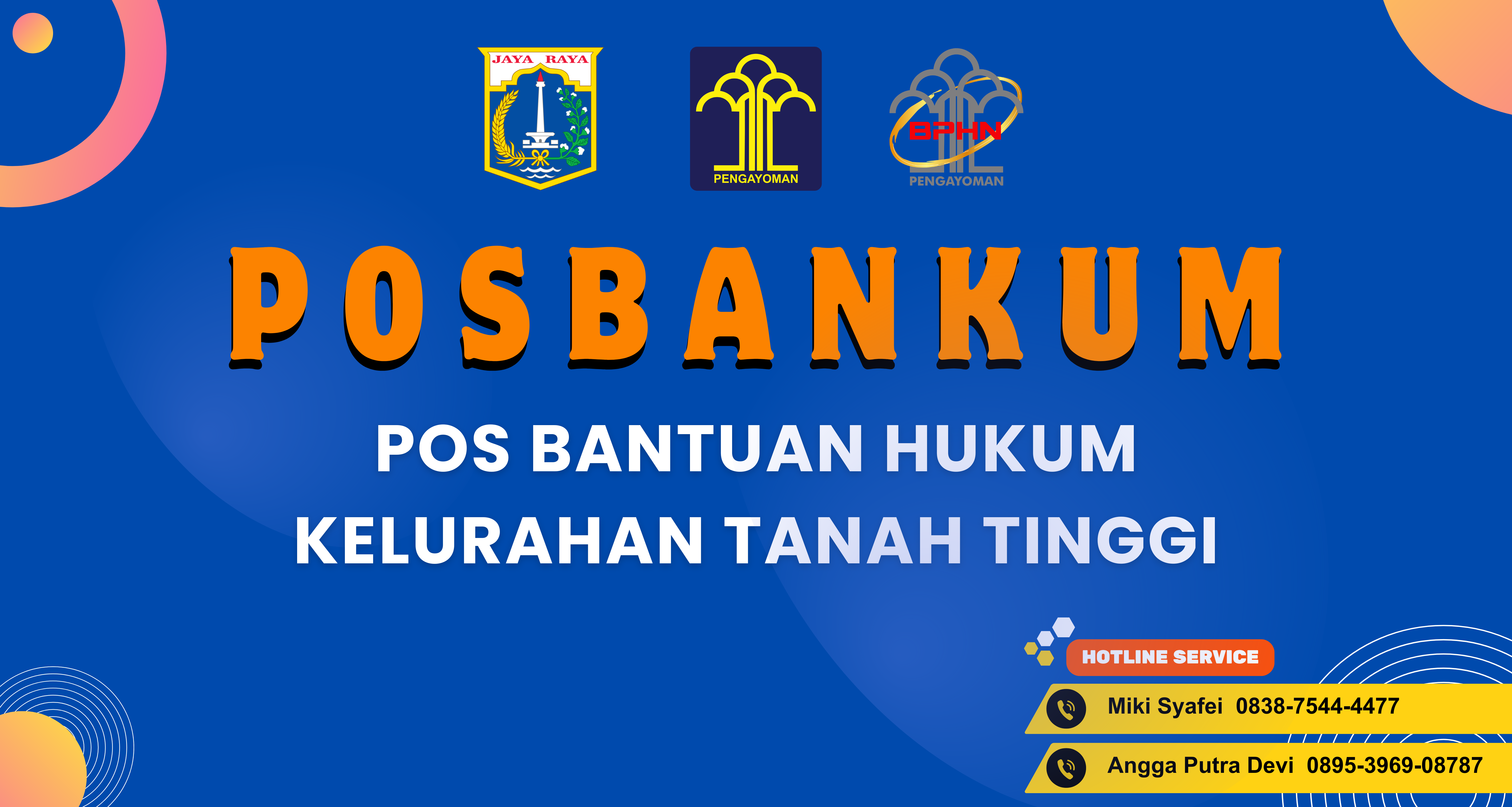 POSBANKUM ( Pos Bantuan Hukum ) adalah salah satu lembaga yang disediakan oleh Kelurahan tanah Tinggi untuk membantu warga masyarakat yang membutuhkan bantuan hukum atau konsultasi untuk mencarikan solulusi dalam...
