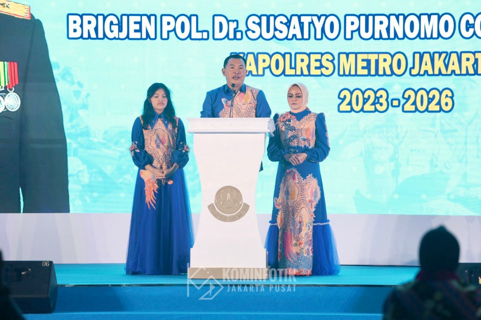 Wali Kota Administrasi Jakarta Pusat Arifin didampingi istri tercinta Witri Yenny Arifin menghadiri acara pisah sambut Kepala Kepolisian Resor (Kapolres) Jakarta Pusat dari pejabat lama Susatyo Purnomo Condro kepada pejabat baru Reynold E.P. Hutagalung.