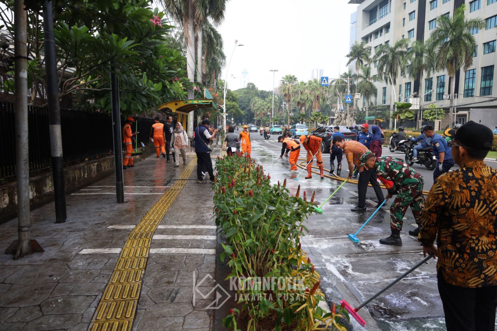 40 Personel Gabungan Kelurahan Cikini Bersihkan Jalur Pejalan Kaki Jalan Cut Mutia