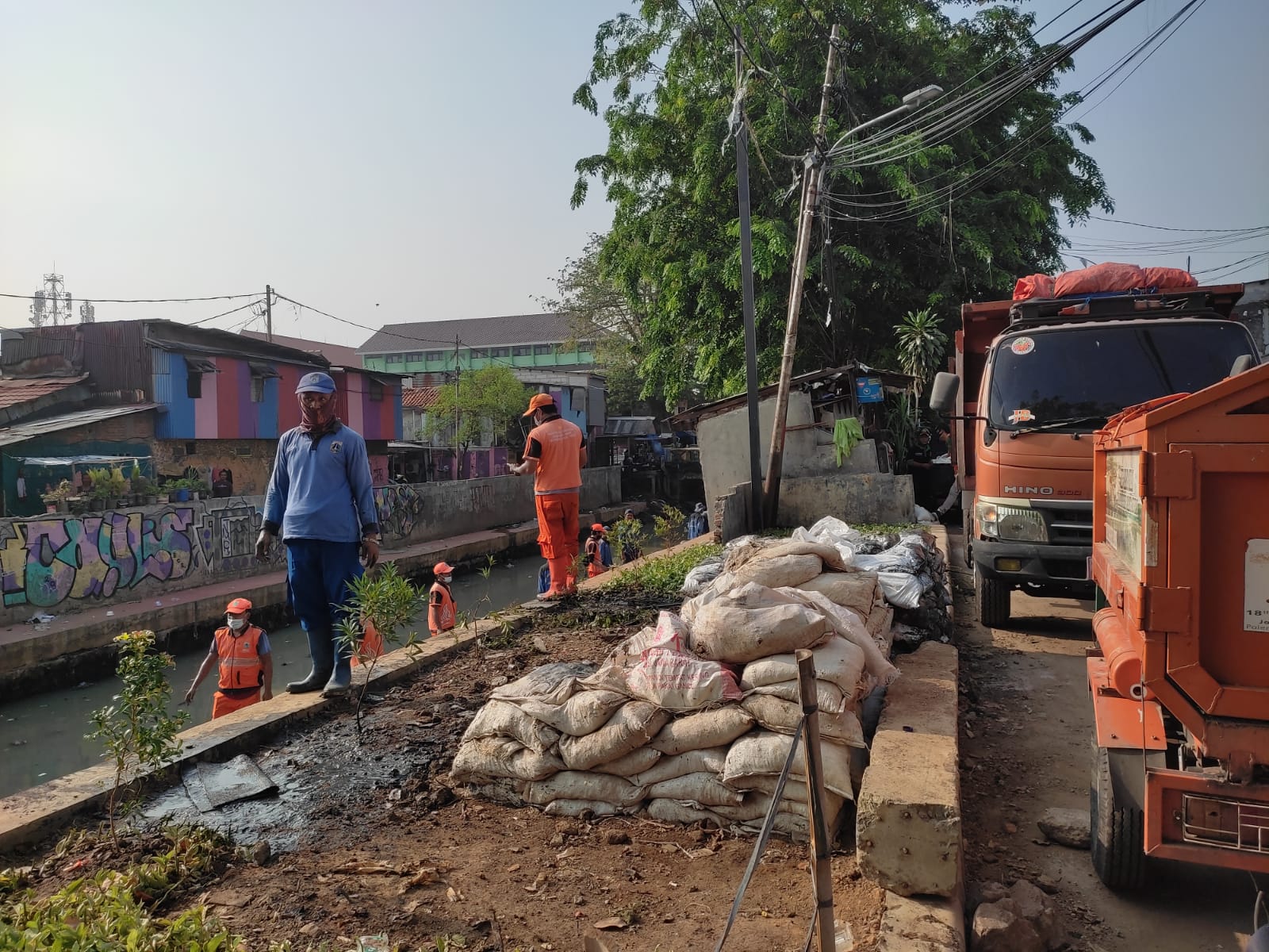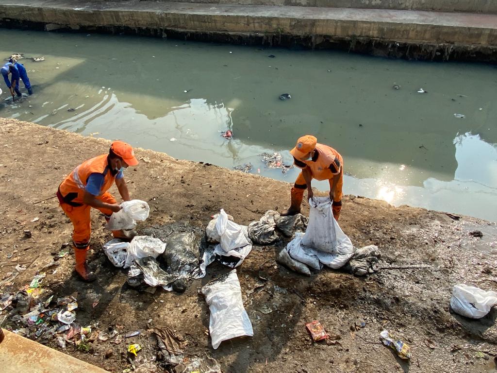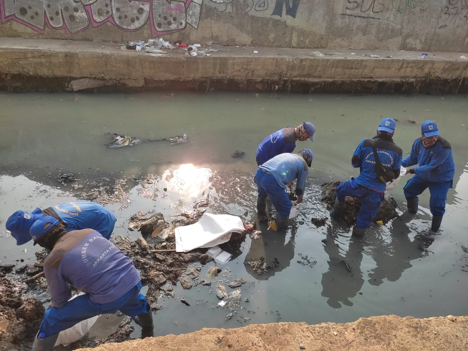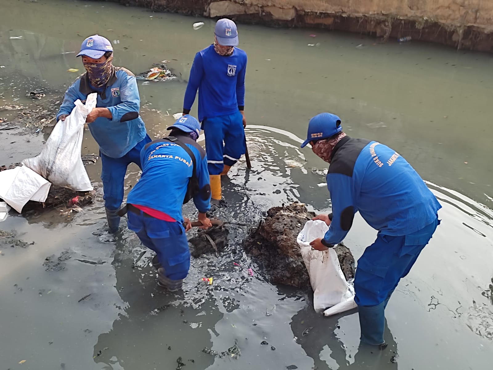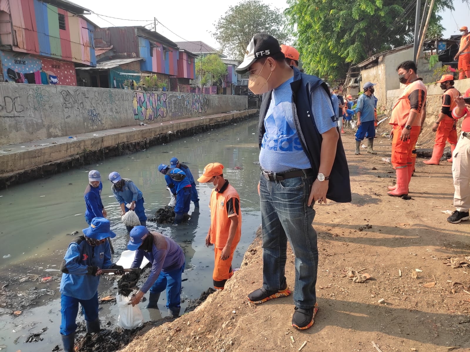 Wakil Wali Kota Administrasi Jakarta Pusat Irwandi meninjau pelaksanaan gerebek lumpur di wilayah Kecamatan Johar Baru, Minggu (17/10). Irwandi mengatakan, sejauh ini pelaksanaan gerebek lumpur sudah memasuki minggu ke empat dan berjalan efektif bahkan melebih target pengerukan. Hanya perlu melakukan evaluasi saat hujan turun, apakah Kali Sentiong yang telah dikeruk dapat menampung derasnya intensitas hujan.