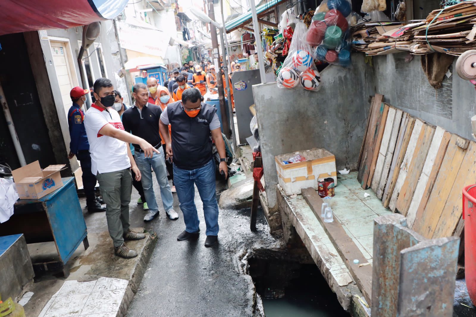 Sekretaris Kota Administrasi Jakarta Pusat, Iqbal Akbarudin bersama jajaran terkait melakukan monitoring kerja bakti di RT 13, RW 07, Kelurahan Benhil, Tanah Abang, Minggu (14/11).