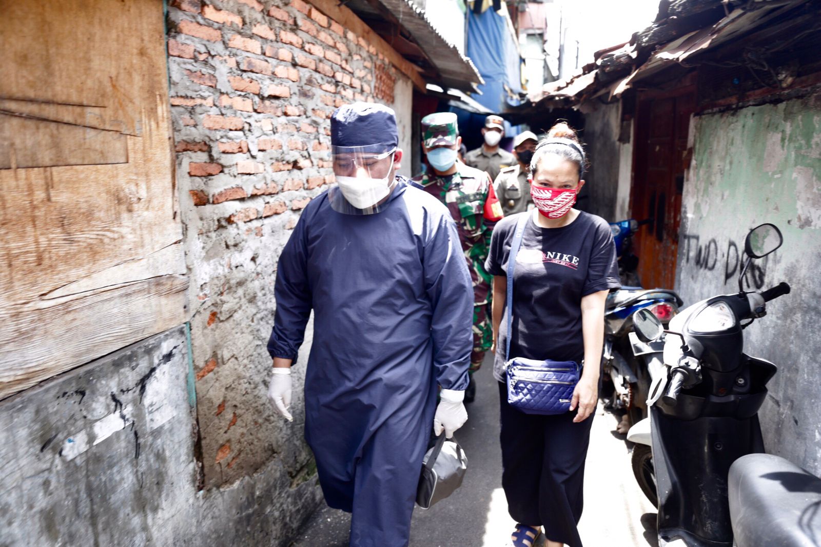 Seperti di RT 07 Kelurahan Senen, Jakarta Pusat, Sekretaris Kelurahan Senen Fikri Arifin dengan didampingi jajaran tiga pilar menyusuri jalan setapak guna mencari dan mengajak warga untuk divaksin.