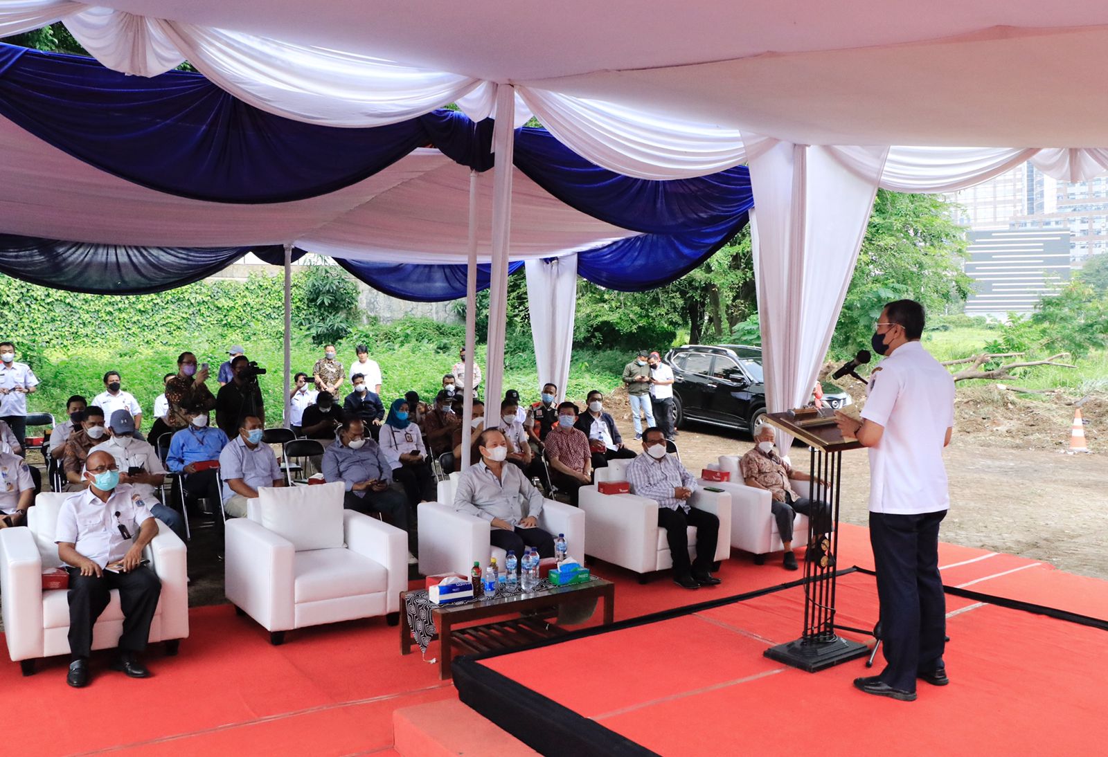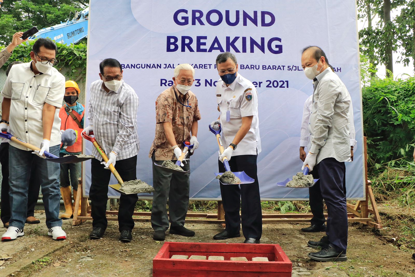 Peletakan batu pertama pembangunan jalan gang Haji Abdullah di wilayah Karet Tengsin ini dihadiri oleh Wali Kota Administrasi Jakarta Pusat bersama jajaran direksi PT. Panen Lestari Basuki, Rabu (3/11).