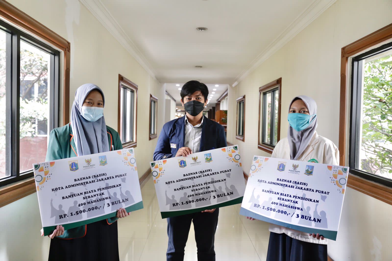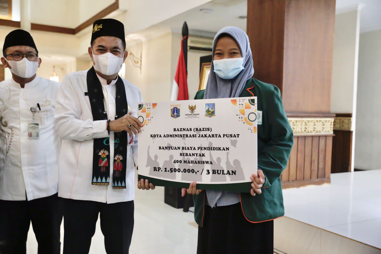 Bantuan biaya pendidikan untuk para mahasiswa tersebut secara simbolis diserahkan langsung oleh Wakil Wali Kota Administrasi Jakarta Pusat Irwandi didampingi Asisten Administrasi dan Kesejahteraan Rakyat Setko Jakarta Pusat M Fahmi, dan Aliy Ridho Koordinator Baznas Bazis Kota Administrasi Jakarta Pusat.