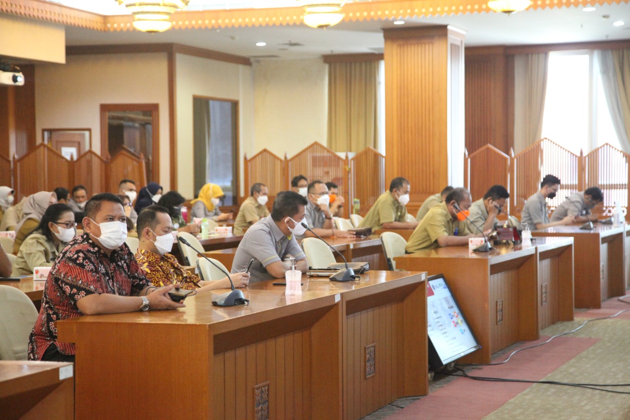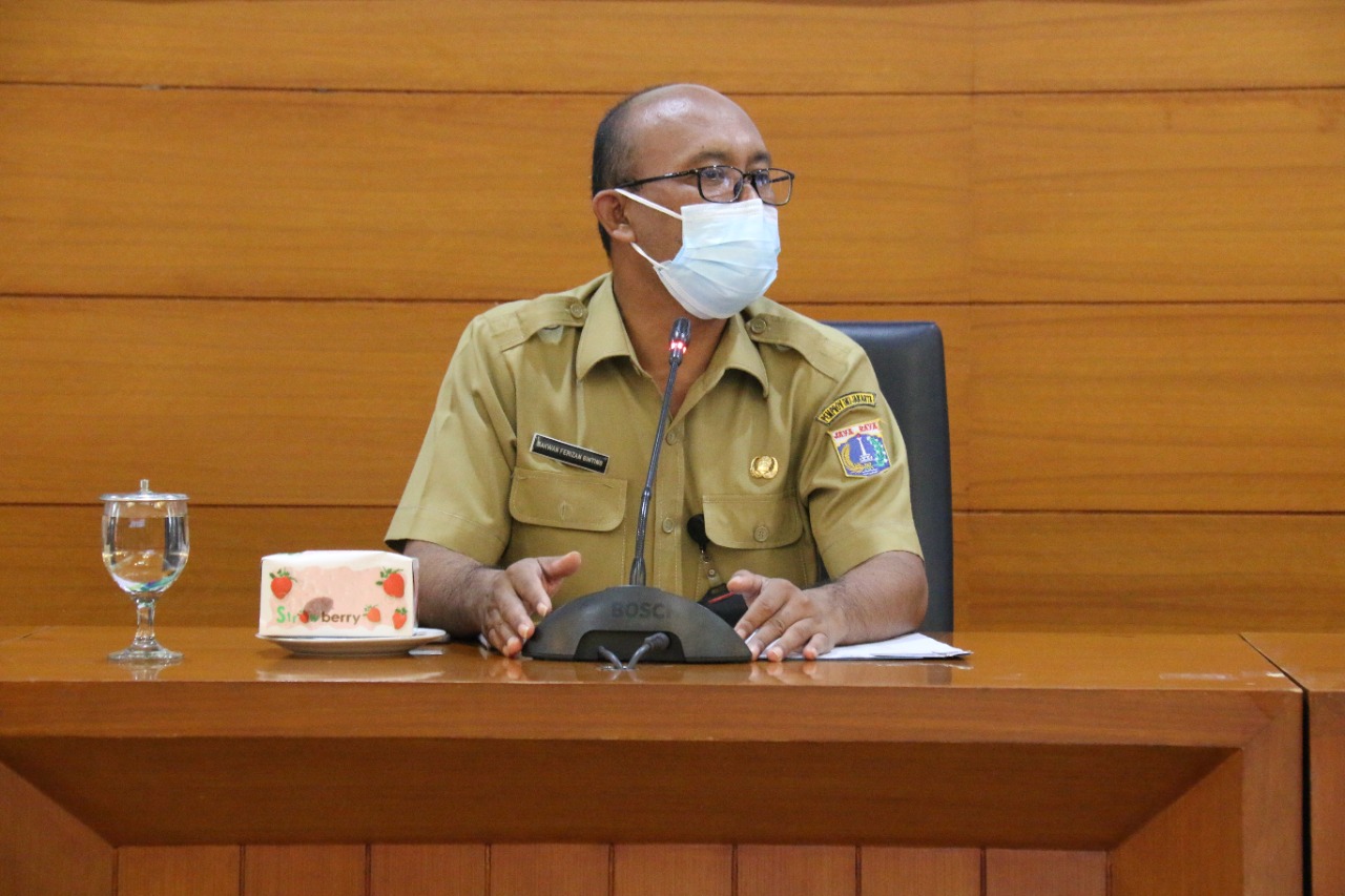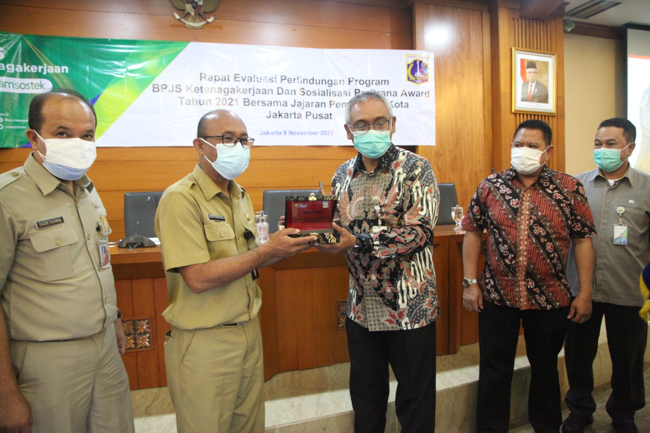 Asisten Perekonomian dan Pembangunan Jakarta Pusat, Bakwan Ferizan Ginting memimpin rapat evaluasi perlindungan program BPJS Ketenagakerjaan dan Sosialisasi Paritrana Award di Ruang Pola, Kantor Wali Kota Jakpus, Selasa (9/11).