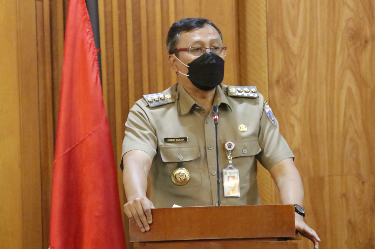Wali Kota Administrasi Jakarta Pusat, Dhany Sukma menghadiri penyaluran sedekah minyak jelantah pasca launching kota tersenyum di Ruang Pola Kantor Wali Kota Jakpus, Senin (30/8).