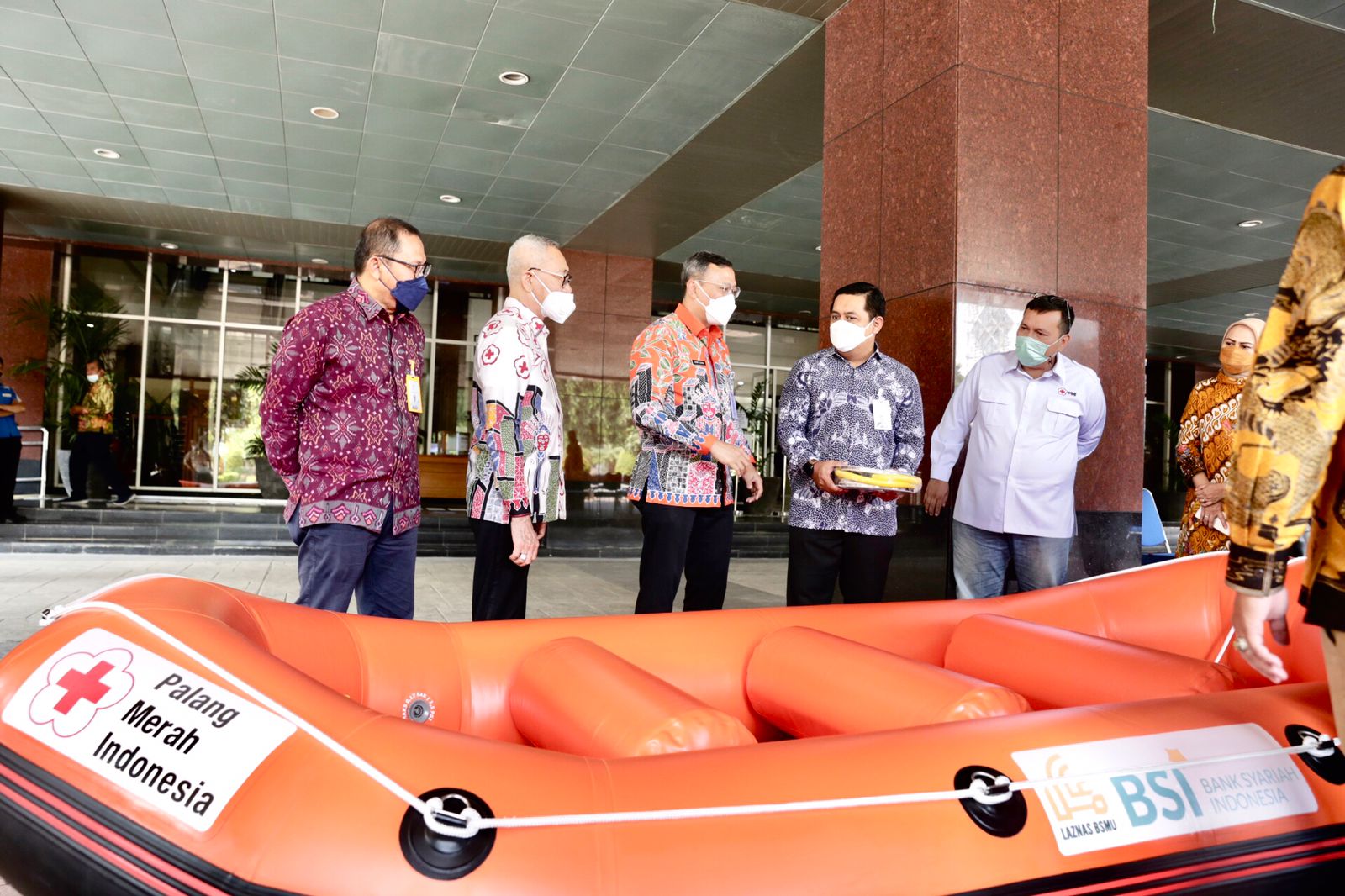 Bertempat di Plaza Kantor Wali Kota Administrasi Jakarta Pusat, Palang Merah Indonesia (PMI) Jakarta Pusat menerima bantuan tiga unit perahu karet dari Bank Syariah Indonesia (BSI). Bantuan tersebut diterima langsung oleh Ketua PMI Jakarta Pusat, Soewardi Sulaiman yang disaksikan oleh Wali Kota Jakarta Pusat, Dhany Sukma.
