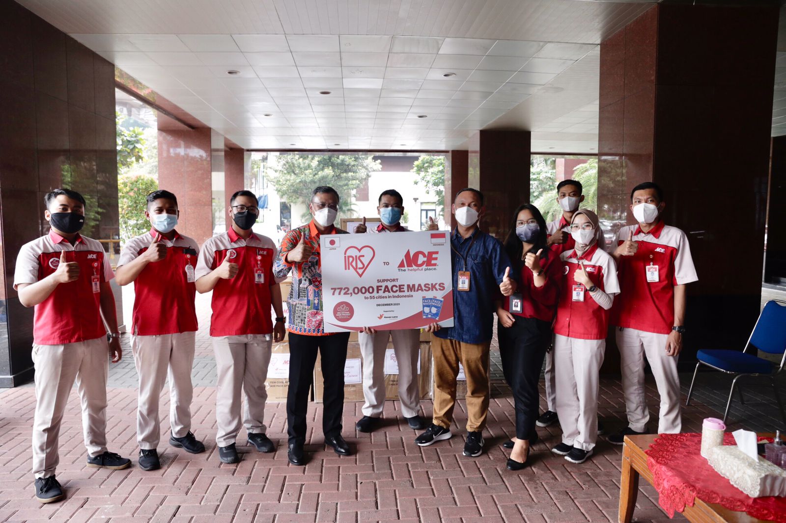 Selain bantuan tiga unit perahu karet, Pemkot Jakarta Pusat juga menerima bantuan masker dari Ace Hardware. Sebanyak 15.120 masker dari Ace Hardware cabang Grand Indonesia diberikan kepada Pemerintah Kota (Pemkot) Administrasi Jakarta Pusat yang diterima langsung oleh Wali Kota Jakpus, Dhany Sukma.