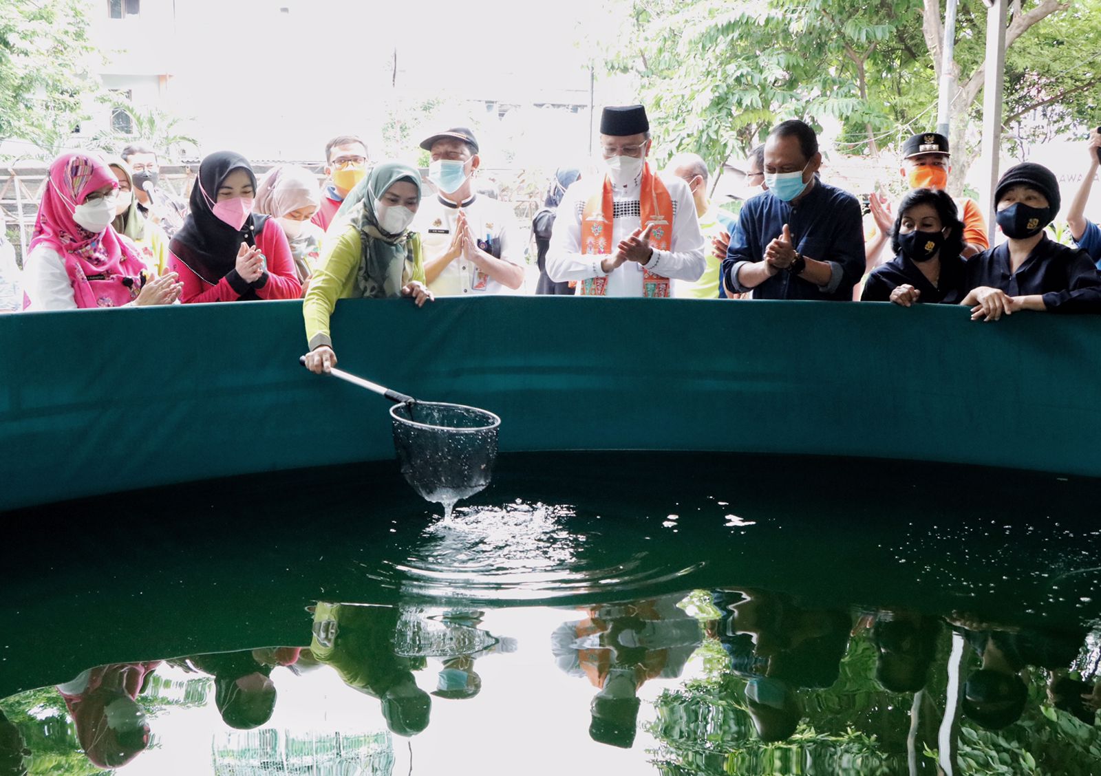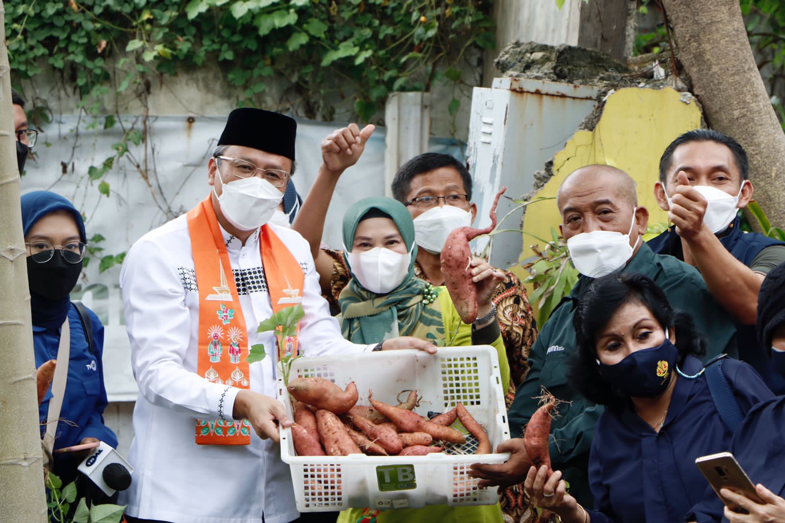 Selain itu, Wali Kota Administrasi Jakarta Pusat bersama dengan jajarannya juga menebar benih ikan lele sebanyak 1500 ekor, panen ikan lele sebanyak 30 kg dan ubi 50 kg.