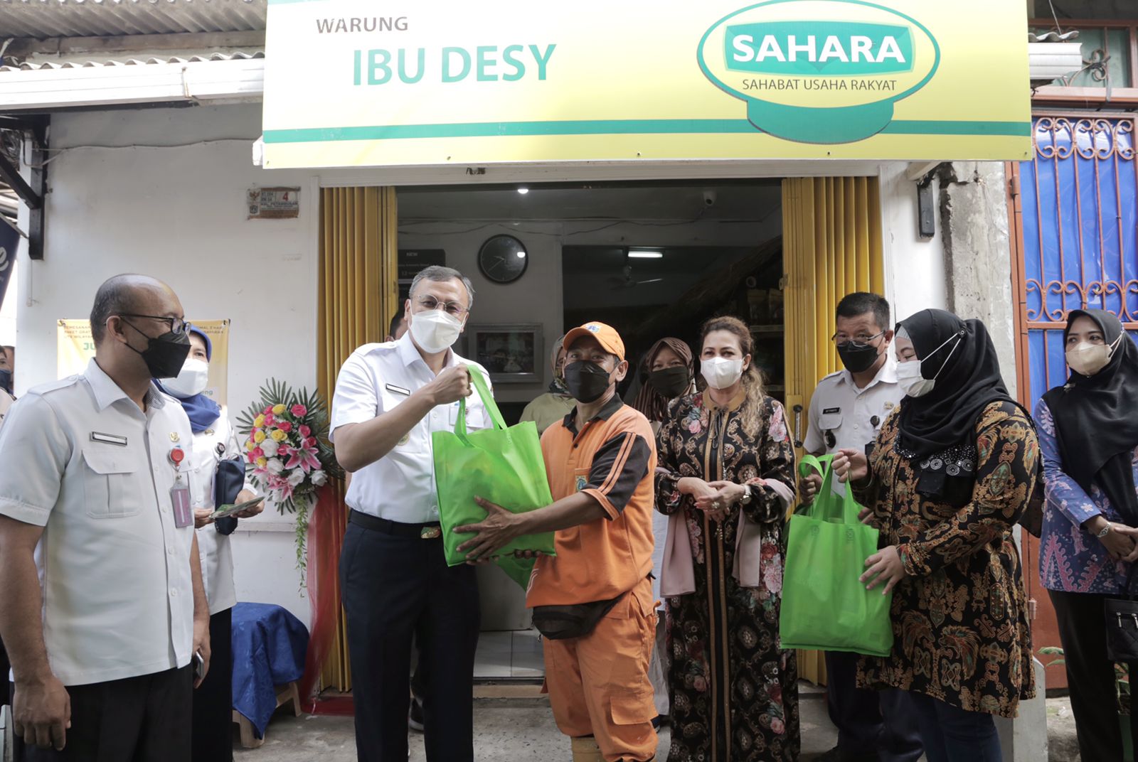 Wali Kota Administrasi Jakarta Pusat, Dhany Sukma didampingi Ketua Umum Induk Koperasi Wanita Pengusaha Indonesia (Inkowapi) Sharmila Yahya meresmikan Warung Sahabat Usaha Rakyat (SAHARA) di Petamburan, Kecamatan Tanah Abang, Rabu (15/12).