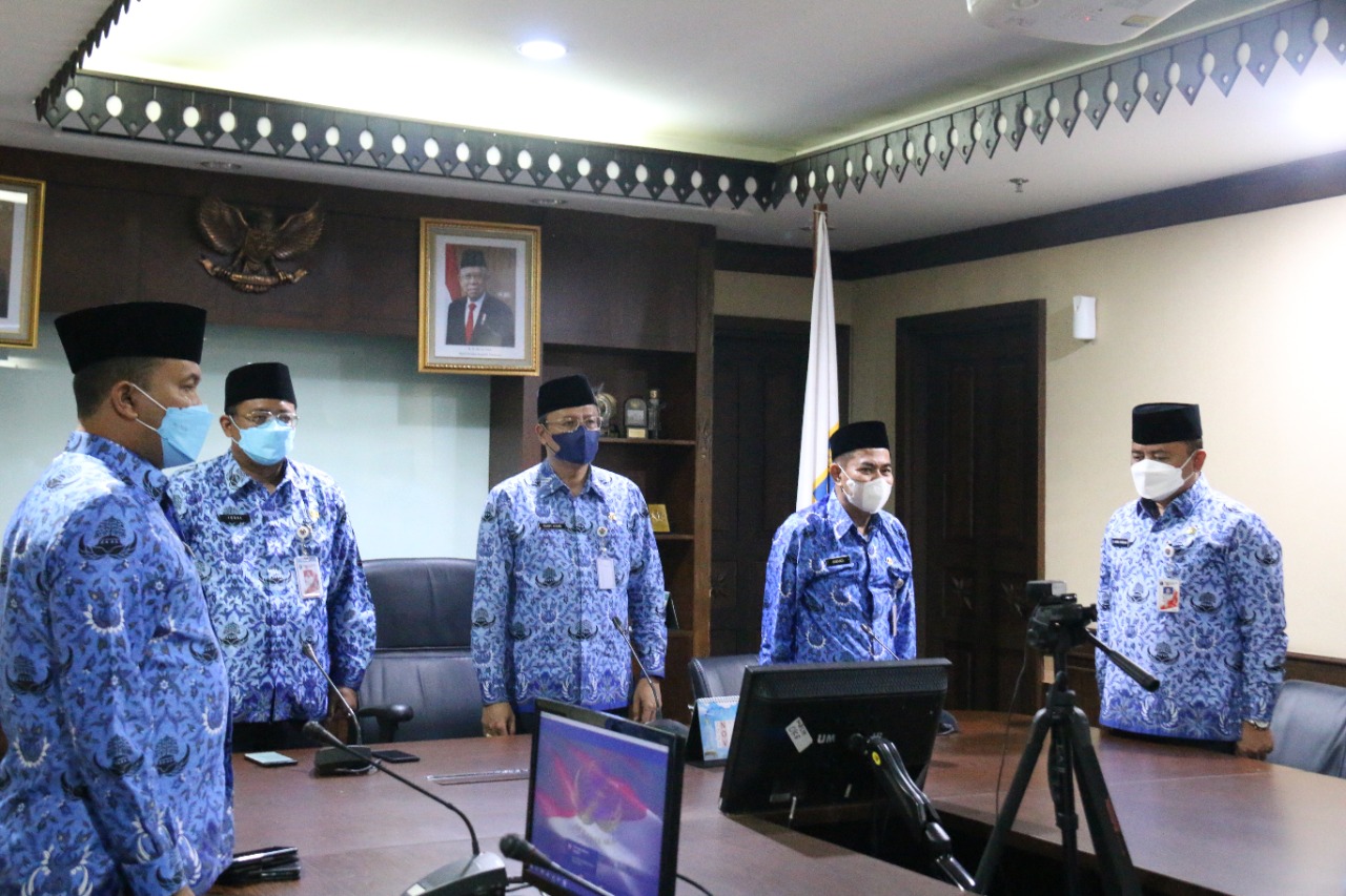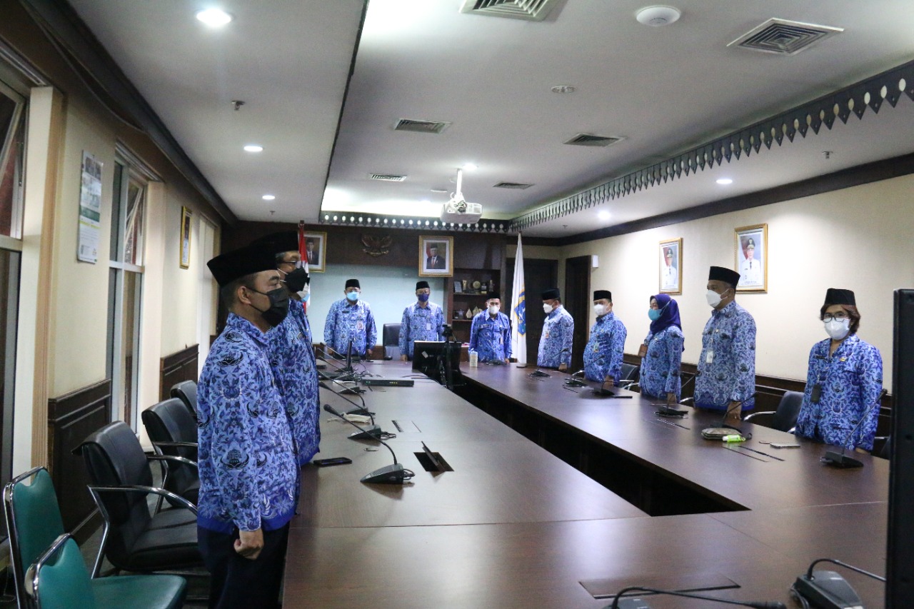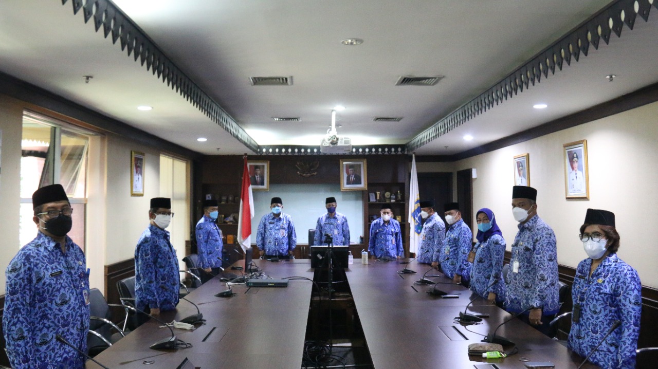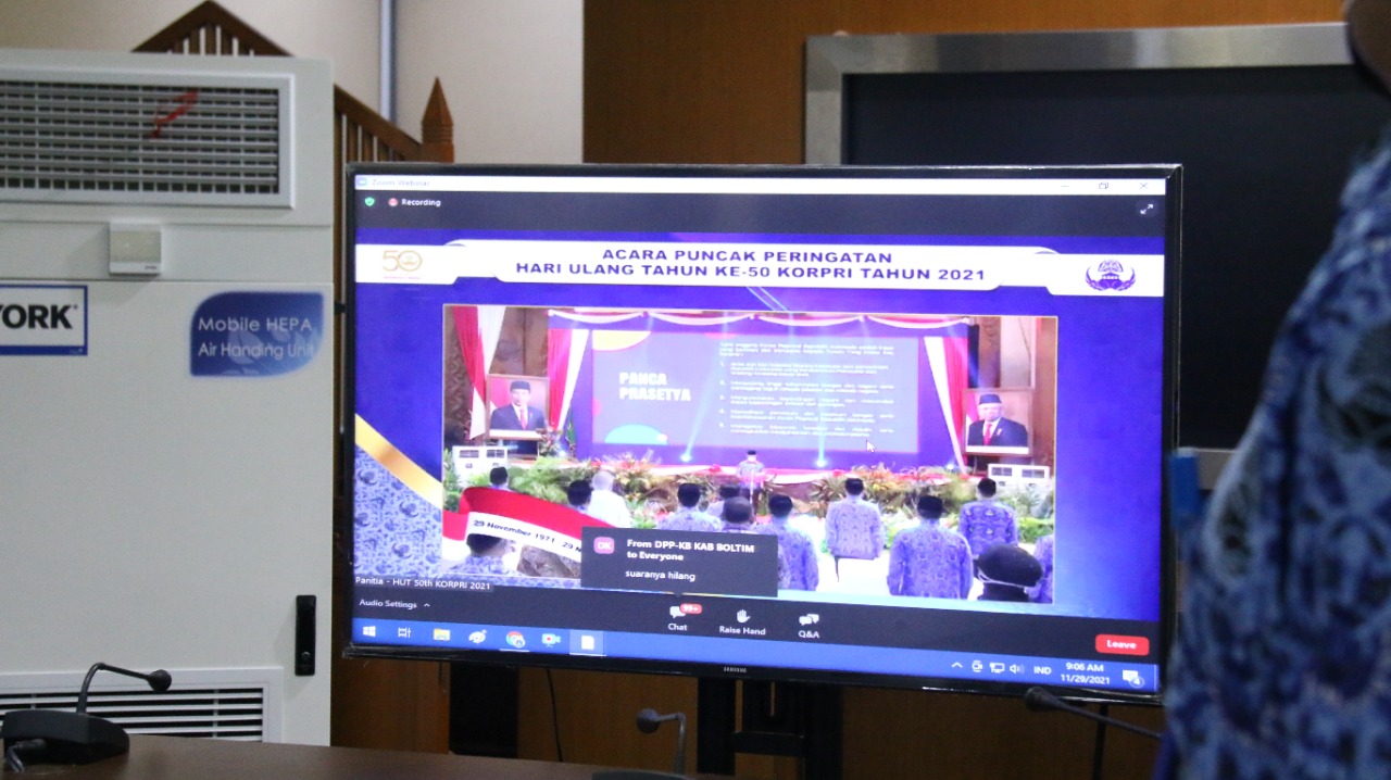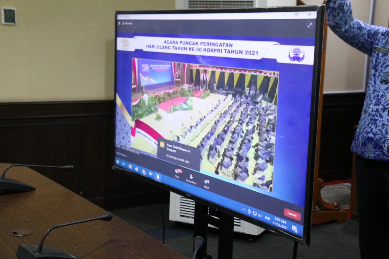 Wali Kota Administrasi Jakarta Pusat Dhany Sukma mengikuti acara puncak peringatan Hari Ulang Tahun (HUT) Korps Pegawai Republik Indonesia (KORPRI) ke-50 tahun yang dilakukan secara daring di Ruang Rapat Wali Kota, Kantor Wali Kota Jakarta Pusat, Senin (29/11).