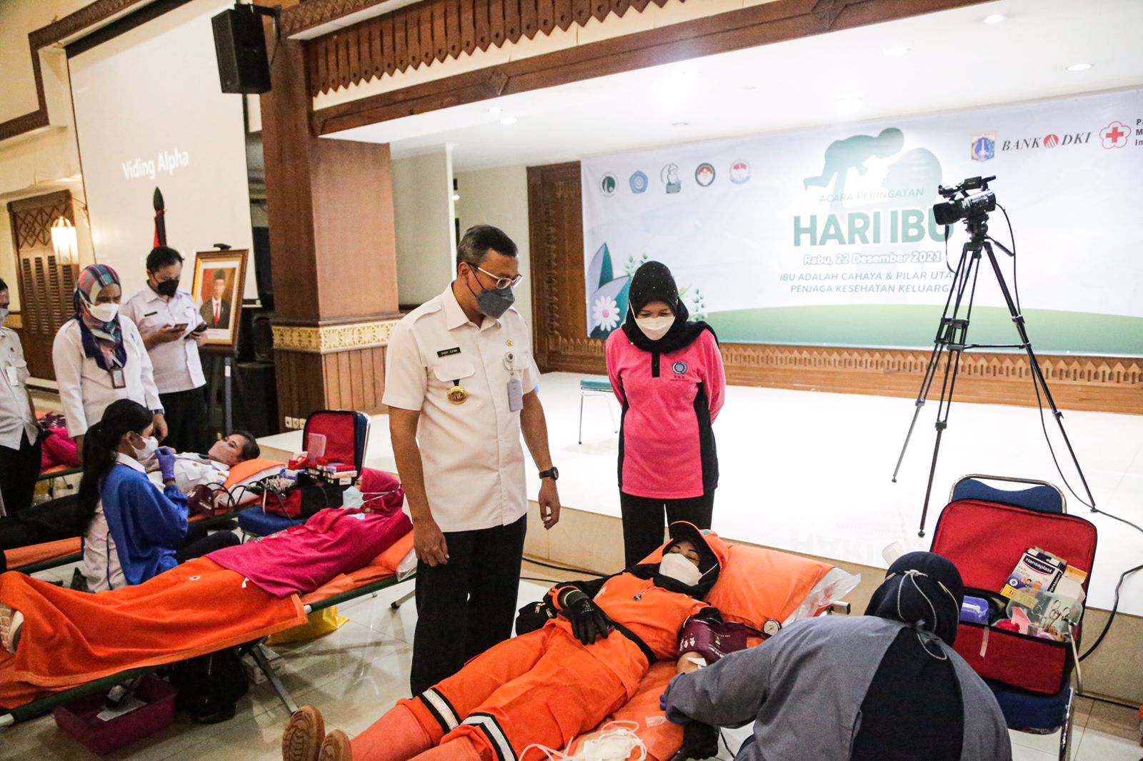 Dalam rangka memeriahkan Hari Ibu yang ke-93, Tim Penggerak (TP) Pemberdayaan Kesejahteraan Keluarga (PKK) Kota Administrasi Jakarta Pusat menggelar donor darah yang bertujuan untuk membantu persediaan stok darah di Palang Merah Indonesia (PMI).