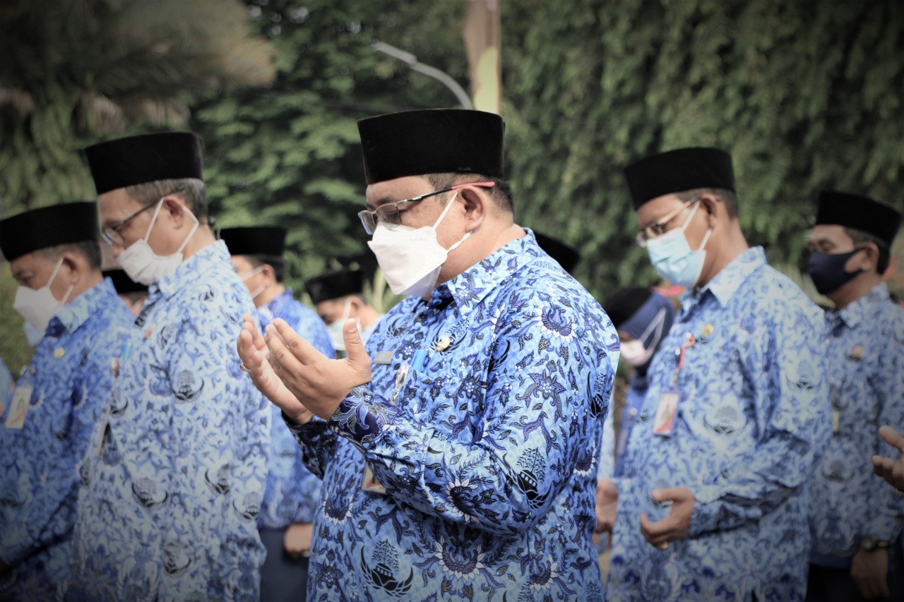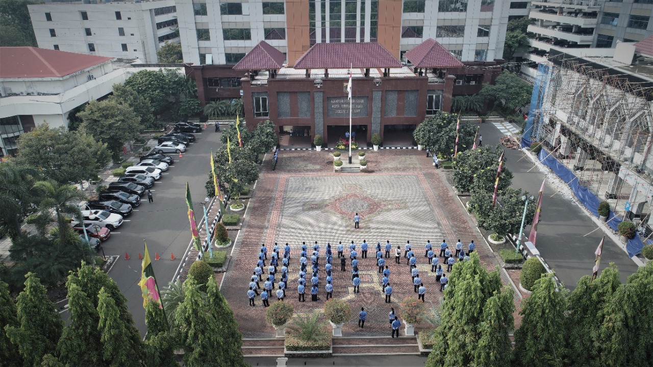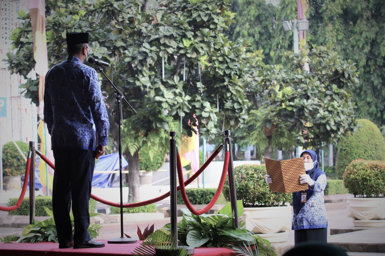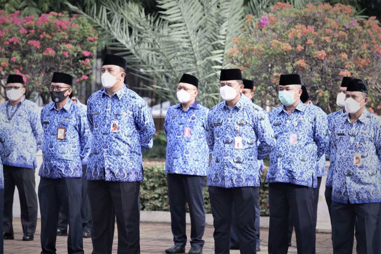 Wali Kota Administrasi Jakarta Pusat Dhany Sukma memimpin upacara peringatan Hari Bela Negara ke 73, di Halaman Kantor Wali Kota Administrasi Jakarta Pusat, Senin (20/12).