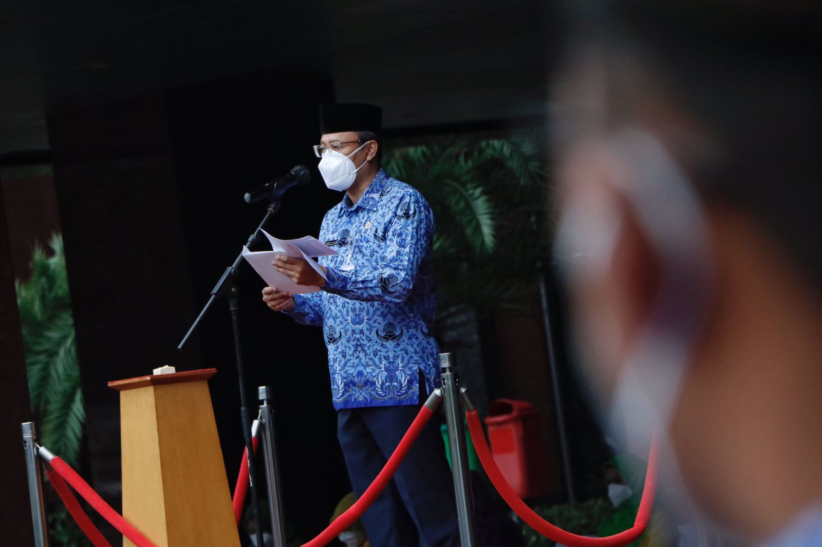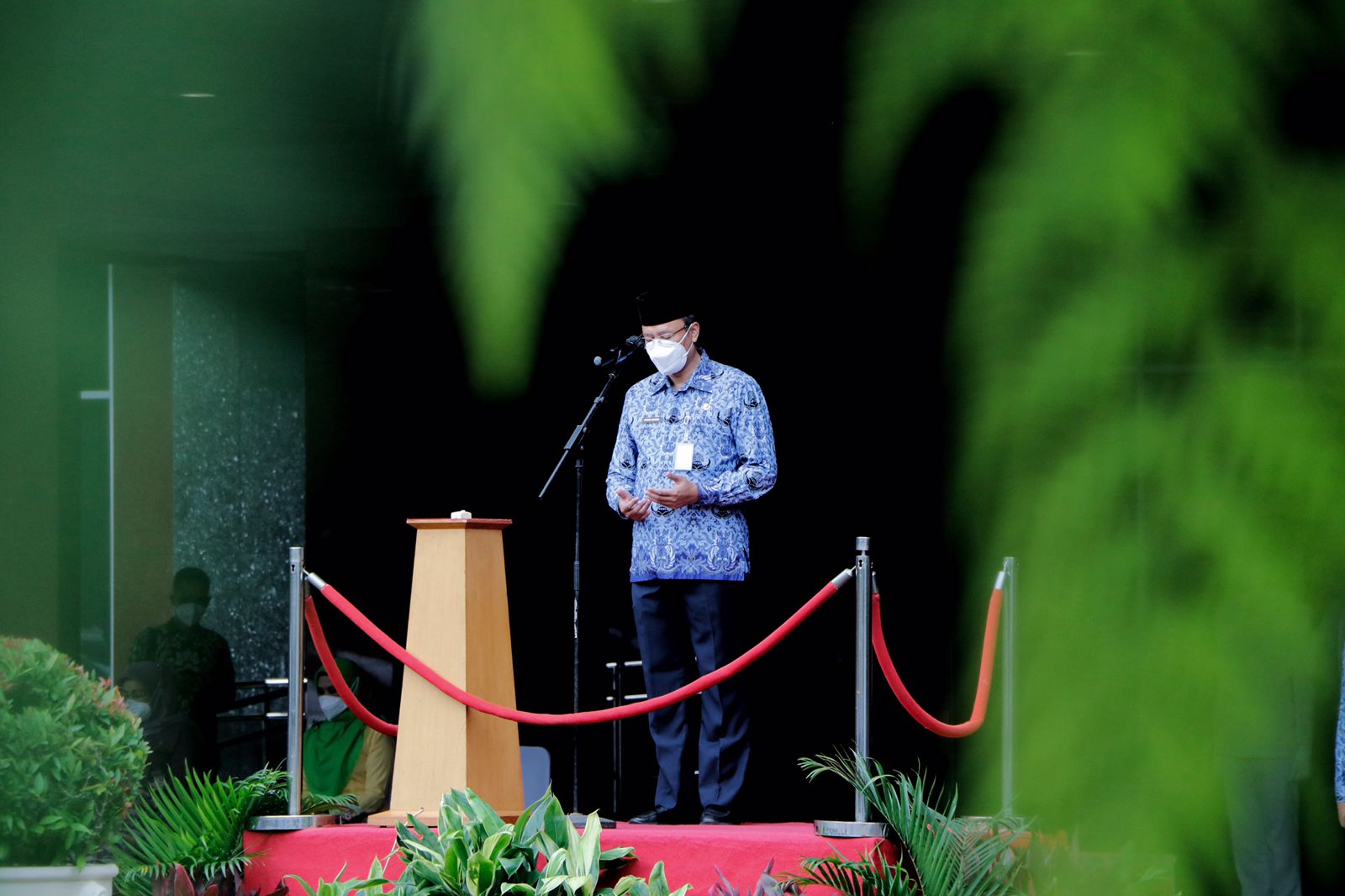 Upacara Memperingati Hari Pahlawan di halaman kantor Wali Kota Jakpus.