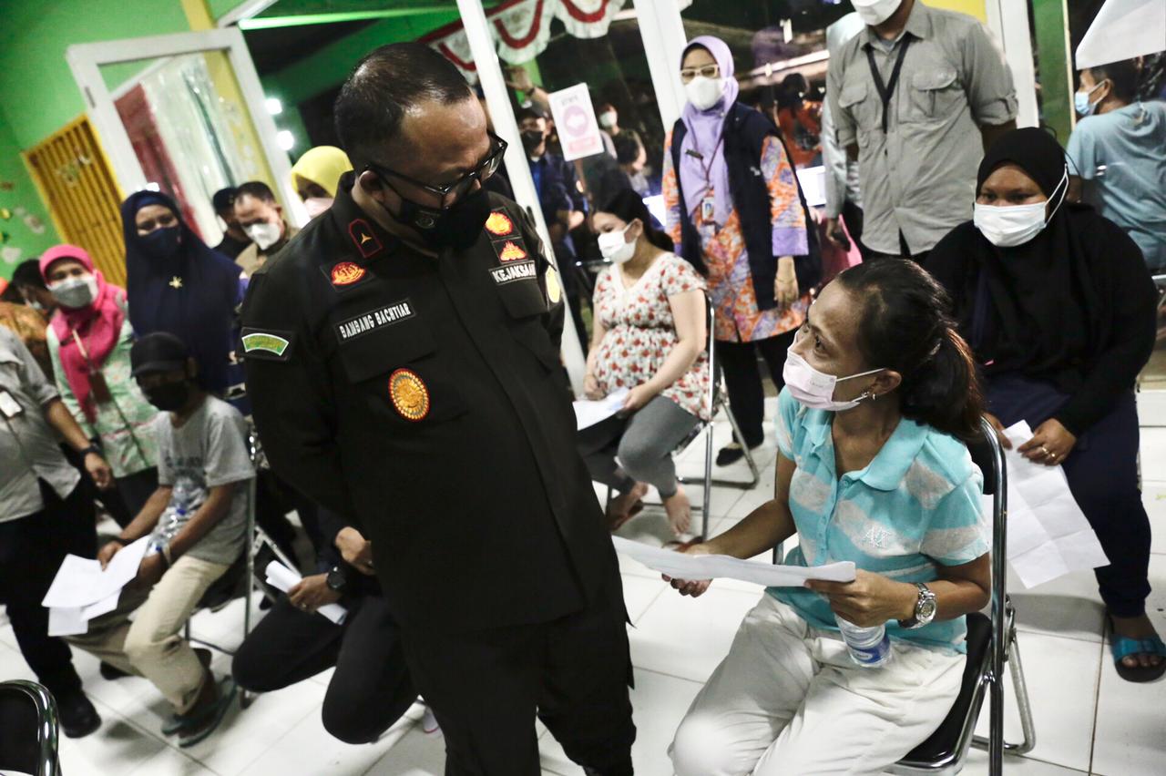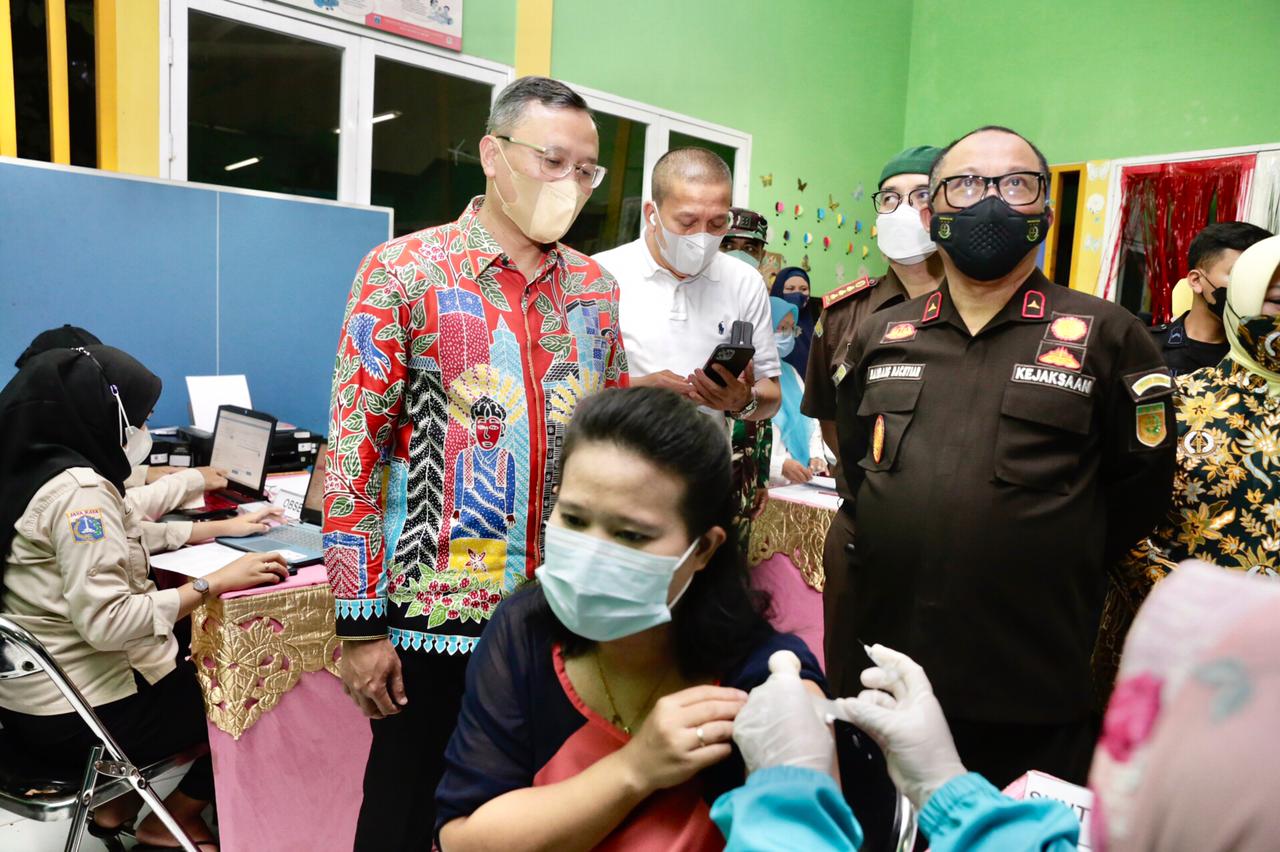 Berbeda dengan biasanya, vaksinasi massal kali ini diselenggarakan malam hari di enam lokasi. Wali Kota Administrasi Jakarta Pusat, Dhany Sukma berkesempatan meninjau salah satunya yakni di RPTRA Intiland Teguh, Karet Tengsin, Kamis (9/12) malam.