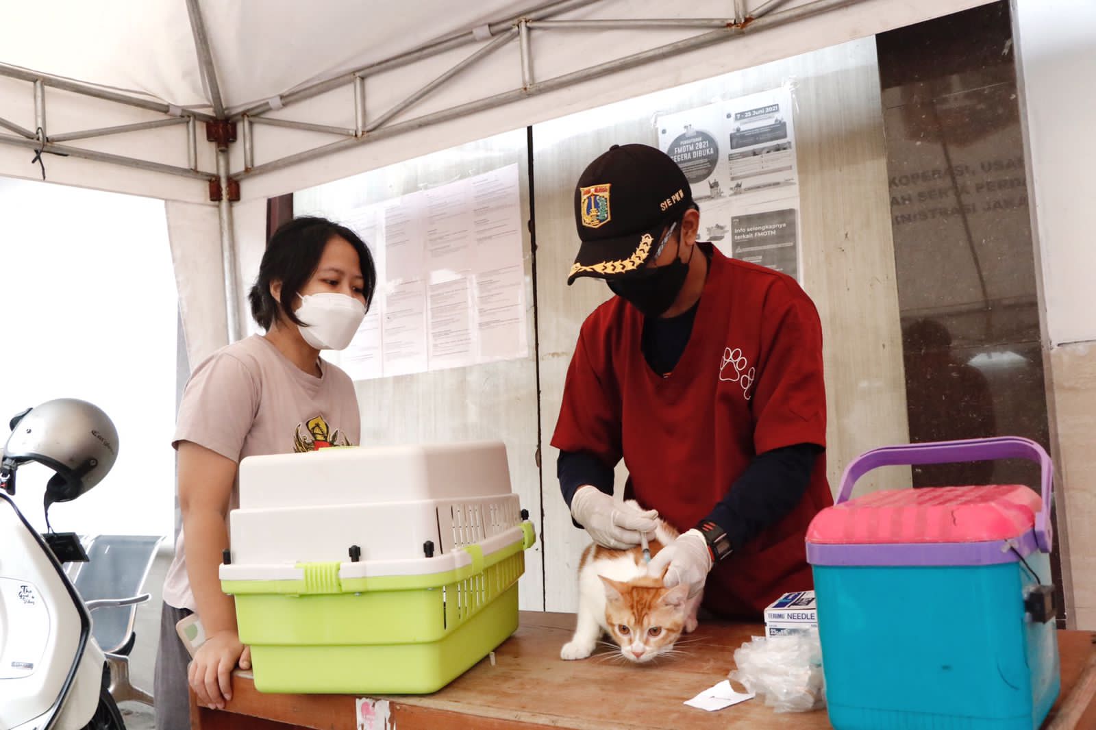 Suku Dinas (Sudin) Ketahanan Pangan Kelautan dan Pertanian (KPKP) Jakarta Pusat menggelar vaksinasi rabies secara gratis bagi warga yang memiliki hewan peliharaan seperti kucing, anjing, musang, dan kera. Kegiatan ini berlangsung di Halaman Kantor Lurah Utan Panjang, Kecamatan Kemayoran.