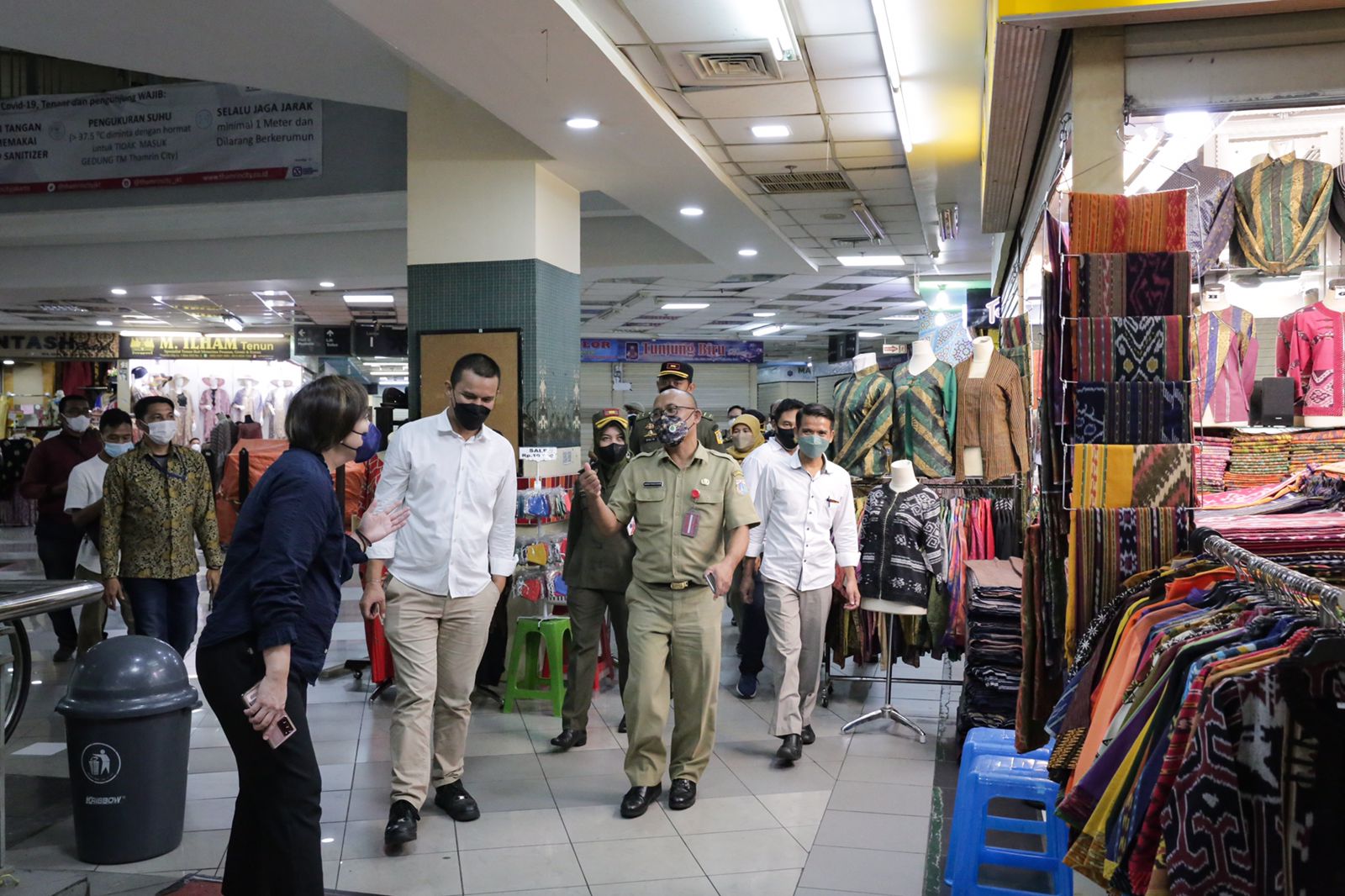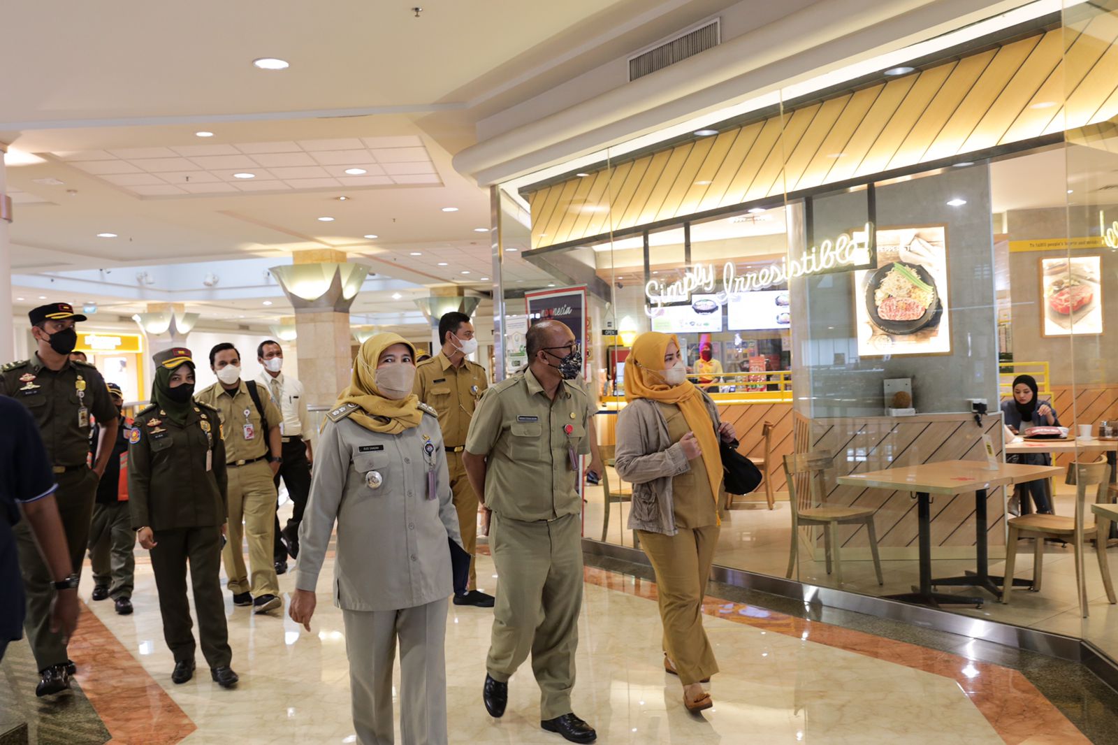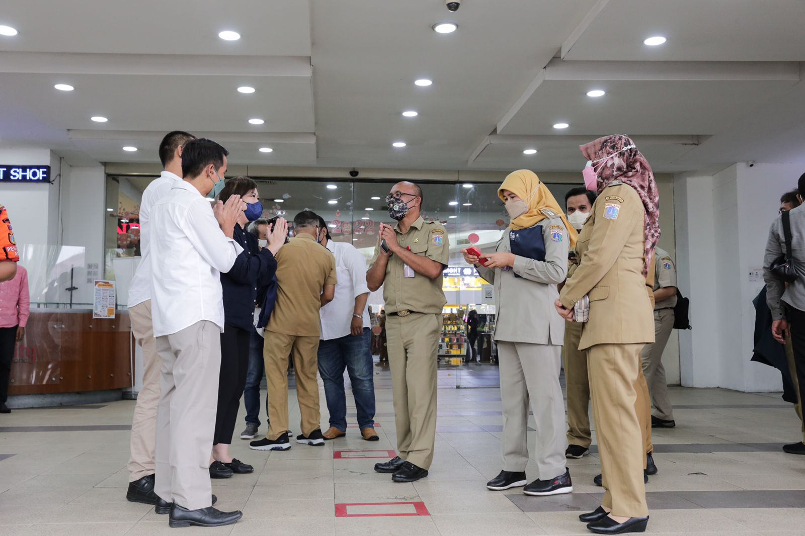 Asisten Perekonomian dan Pembangunan Setko Administrasi Jakarta Pusat, Bakwan Ferizan Ginting melakukan pemantauan penerapan protokol kesehatan (prokes) Covid-19 di Thamrin City dan Plaza Senayan, Selasa (8/2).