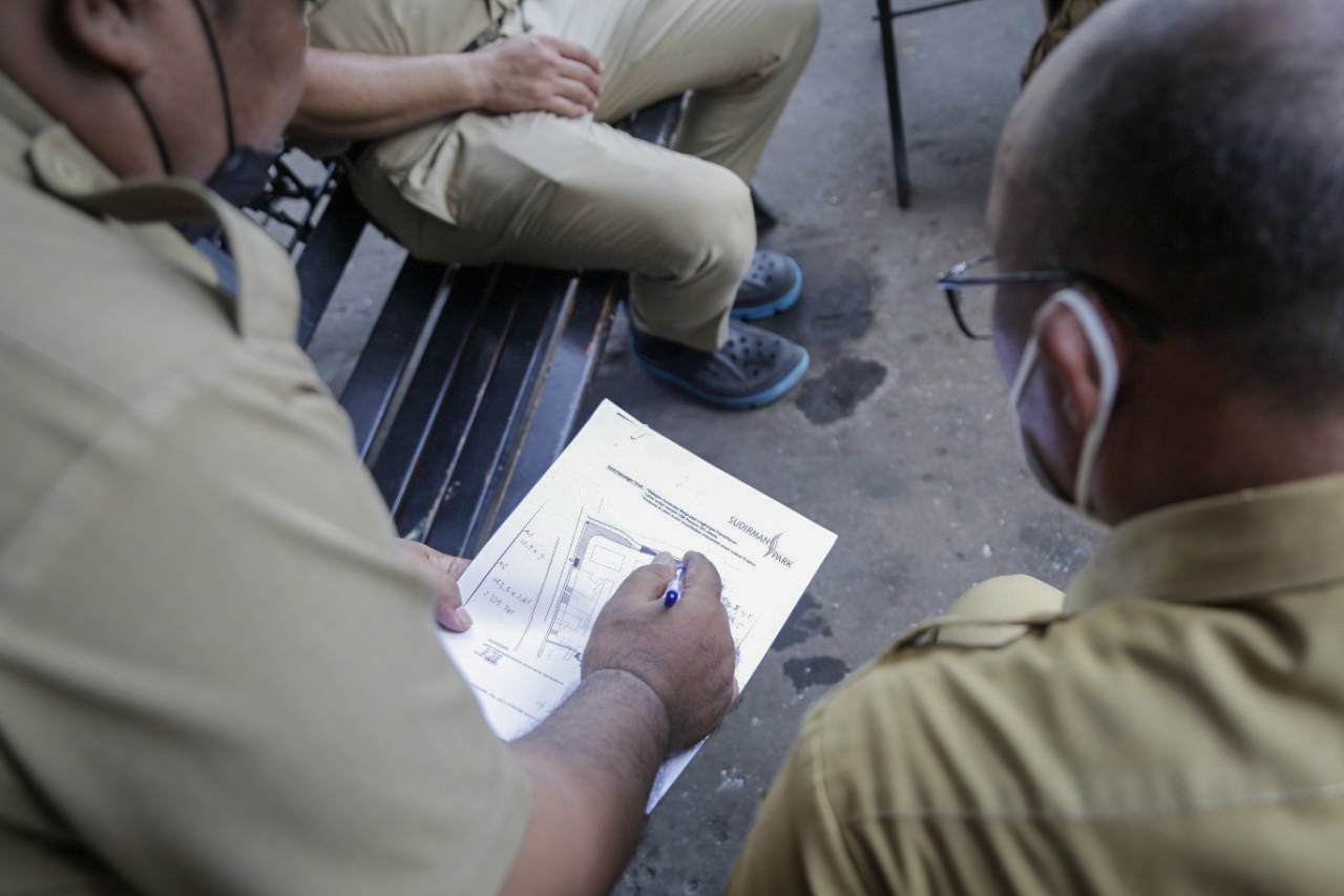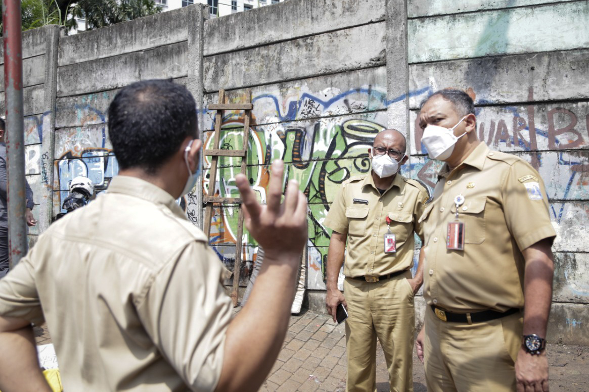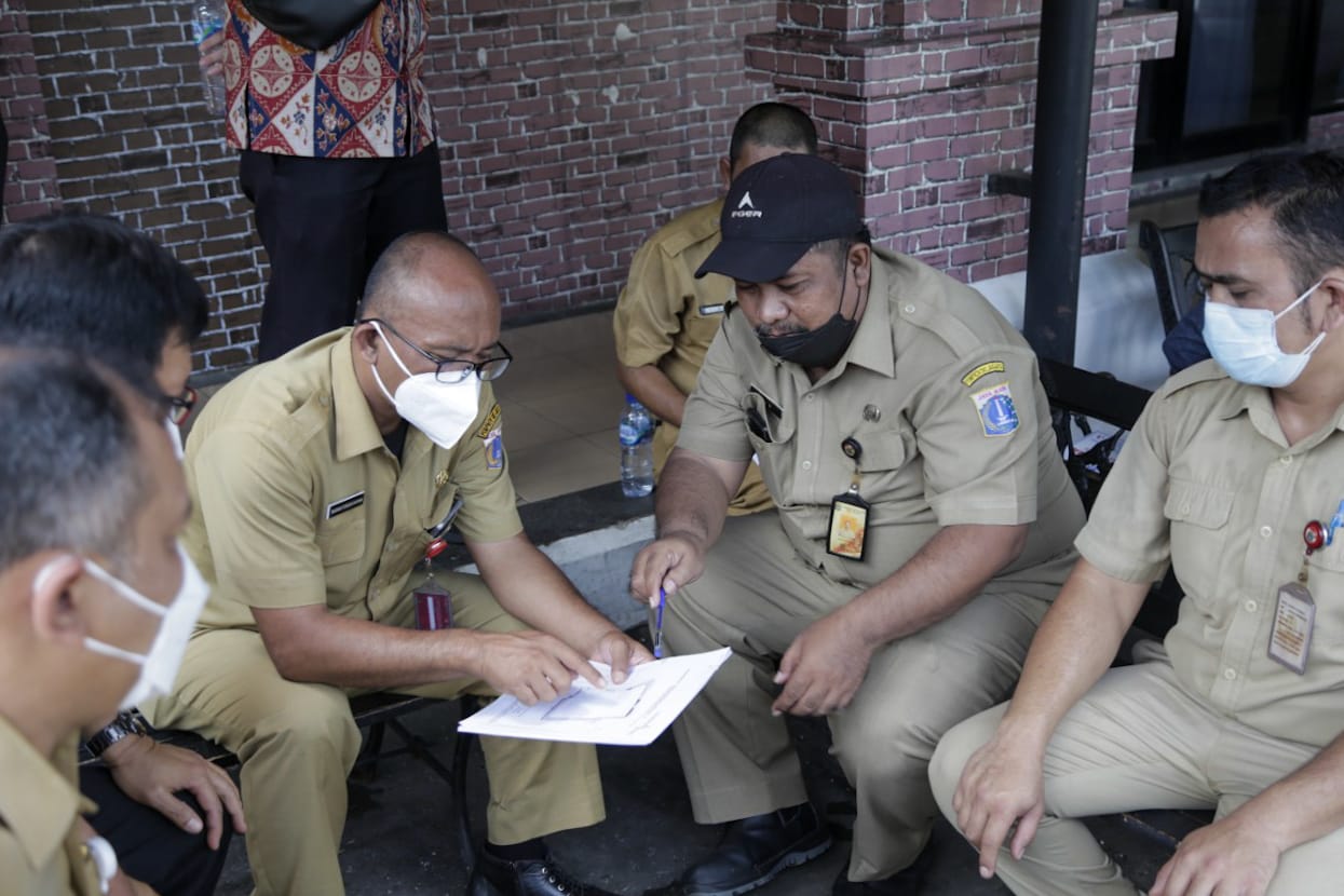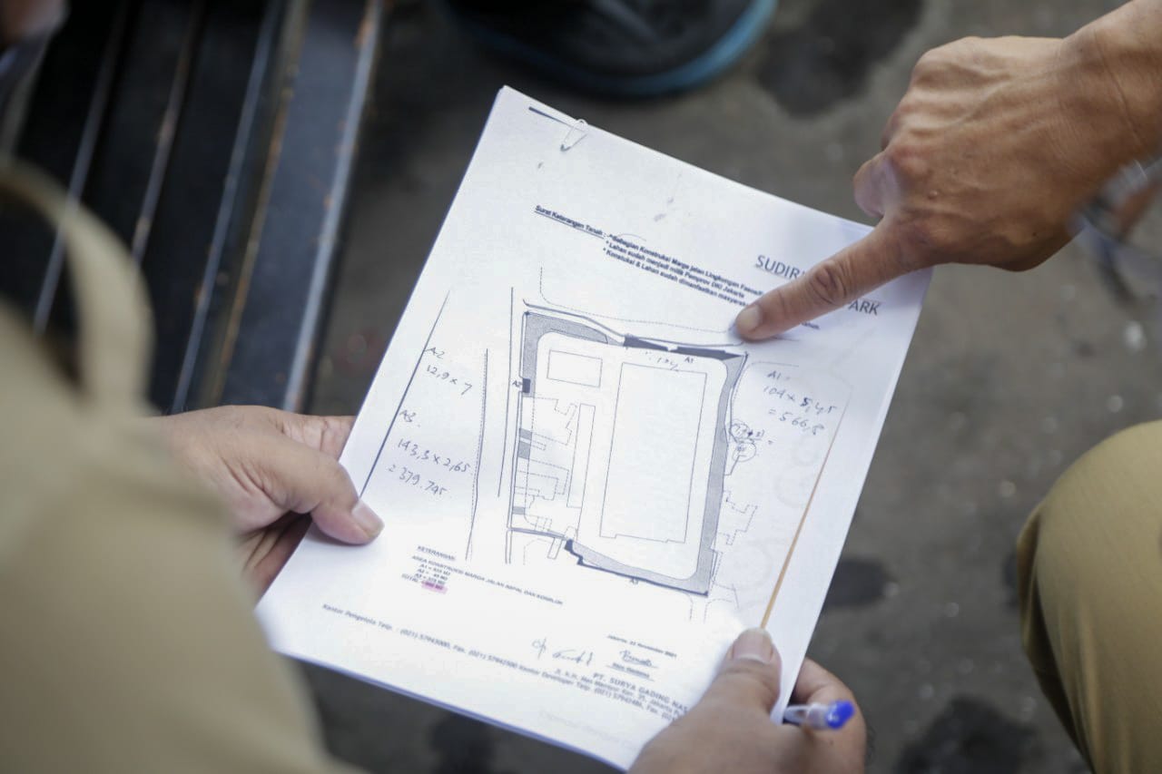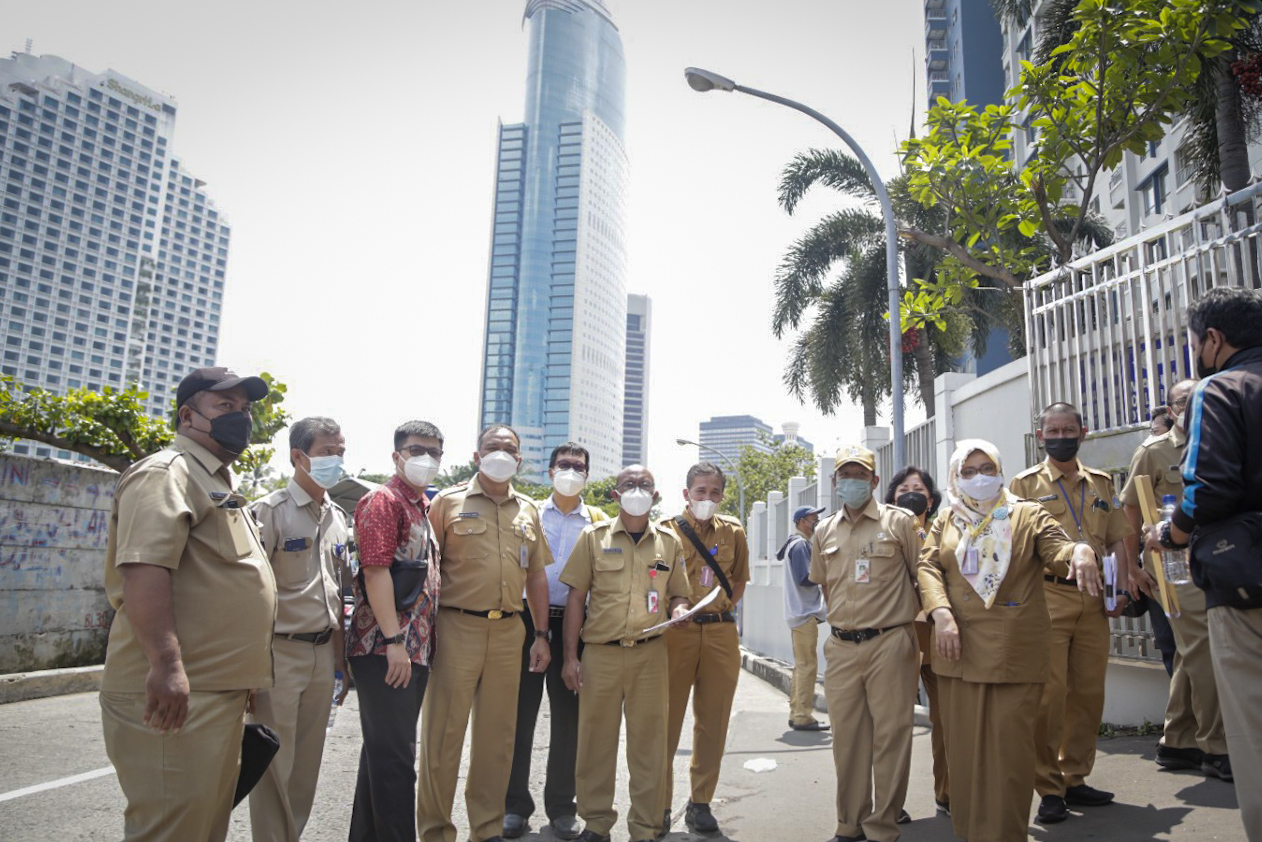 Asisten Perekonomian dan Pembangunan Setko Kota Adminstrasi Jakarta Pusat Bakwan Ferizan Ginting meninjau pelaksanaan penelitian fisik lapangan yang berlokasi di PT Surya Gading Mas Sakti, Jalan KH Mas Mansyur Kav 35, Kelurahan Karet Tengsin, Kecamatan Tanah Abang, Jakarta Pusat, Senin (14/3).