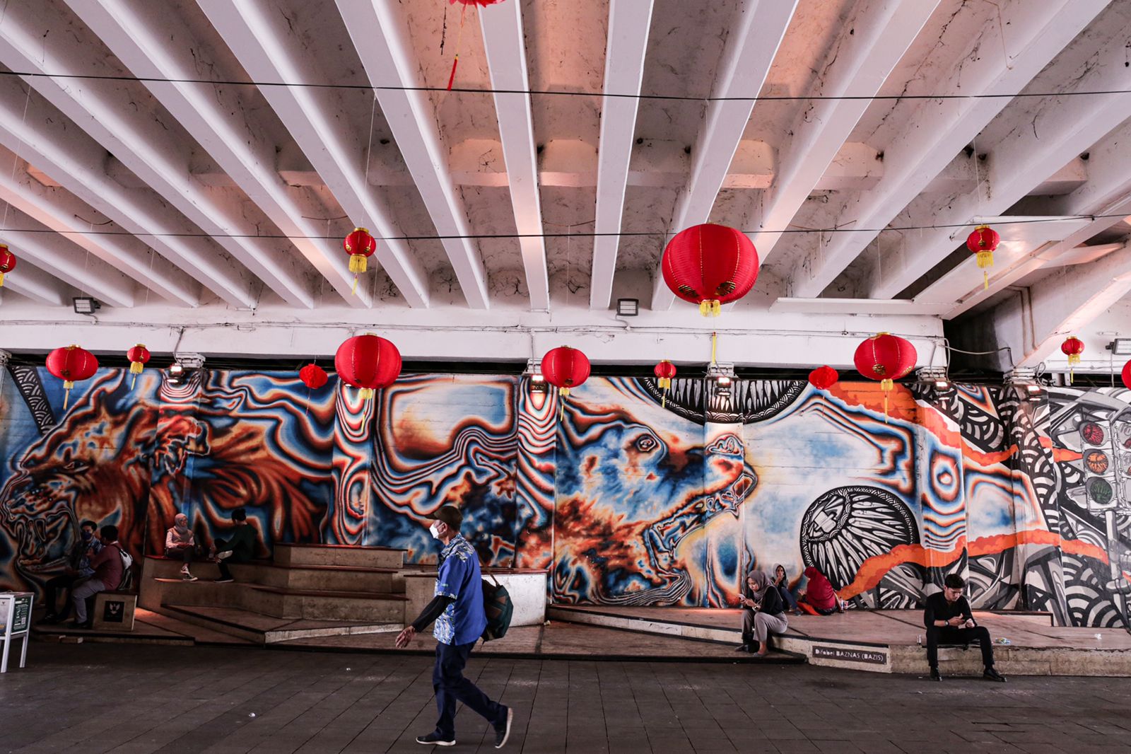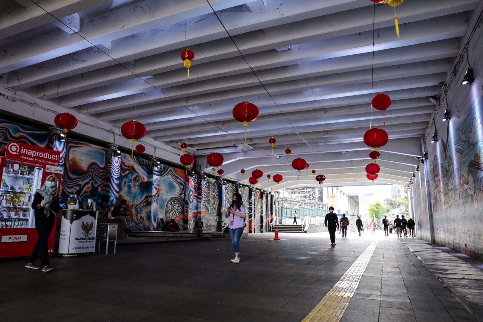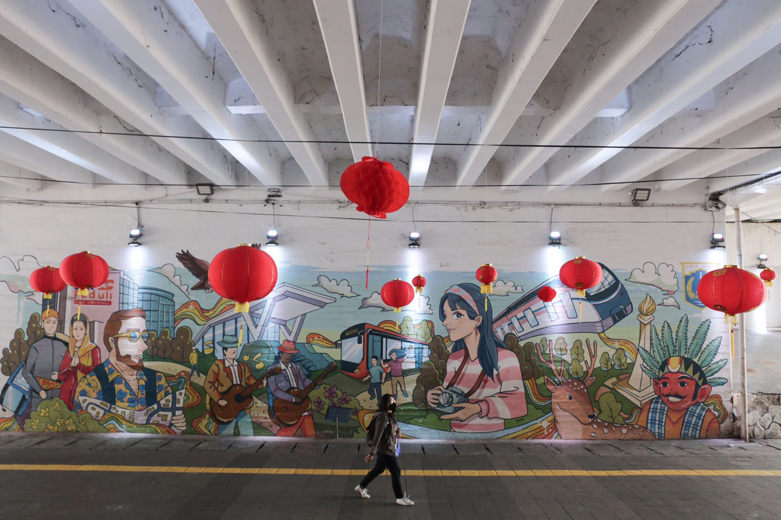 Salah satunya ada di Terowongan Kendal, Jakarta Pusat. Spot yang memang sudah instagramable ini semakin cantik dengan kehadiran puluhan ornamen lampion.