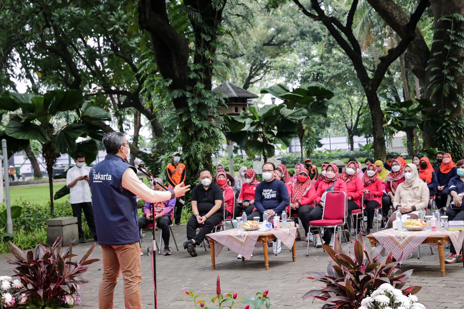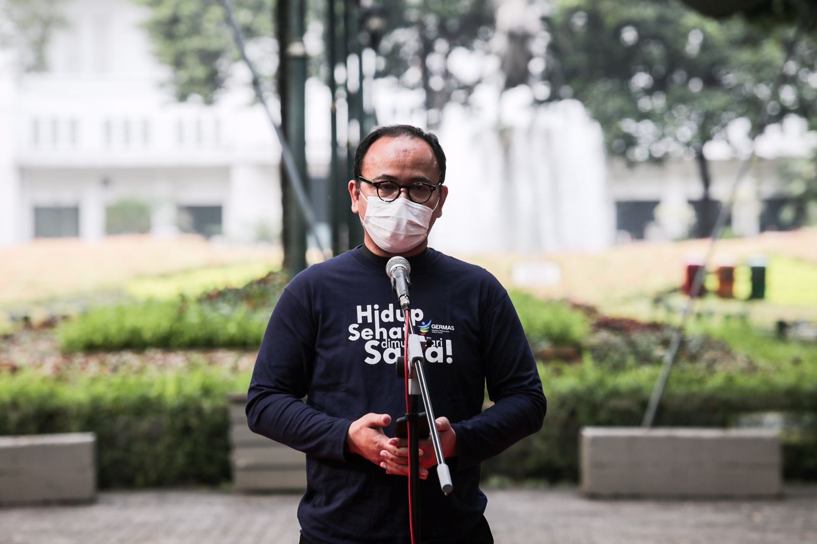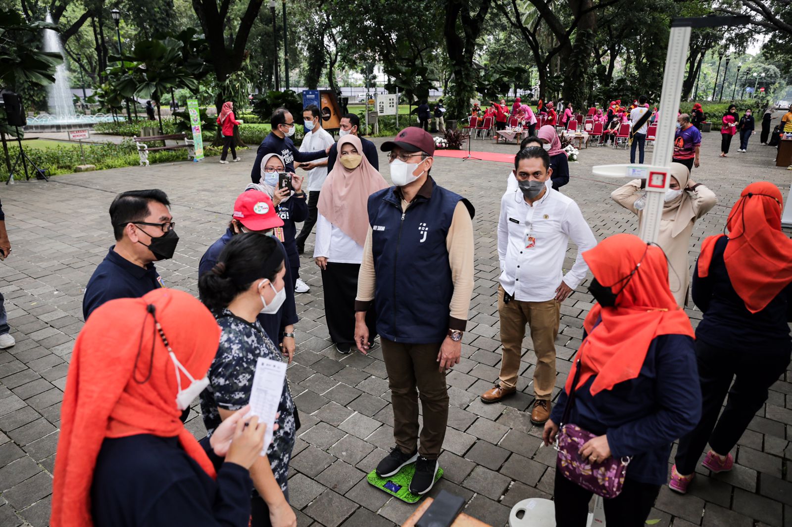 Wali Kota Administrasi Jakarta Pusat Dhany Sukma membuka kegiatan Ajakan Hidup Sehat di Taman Suropati, Kecamatan Menteng, Jakarta Pusat, Jumat (18/3).