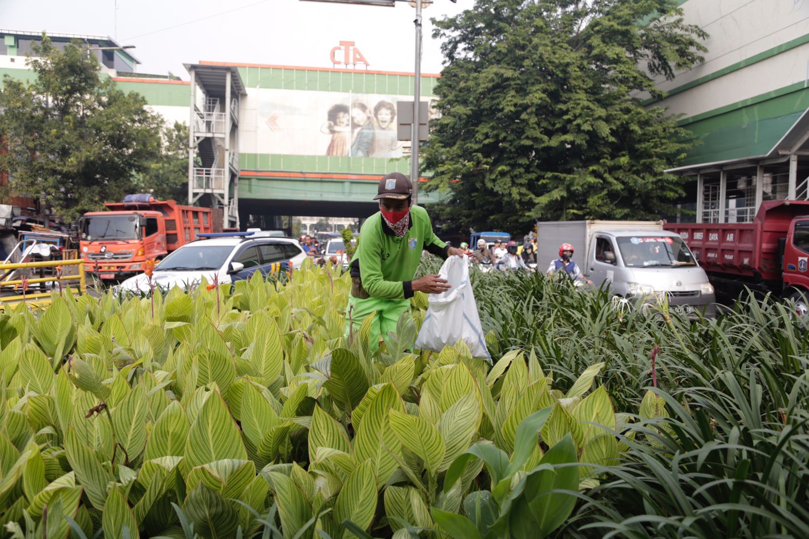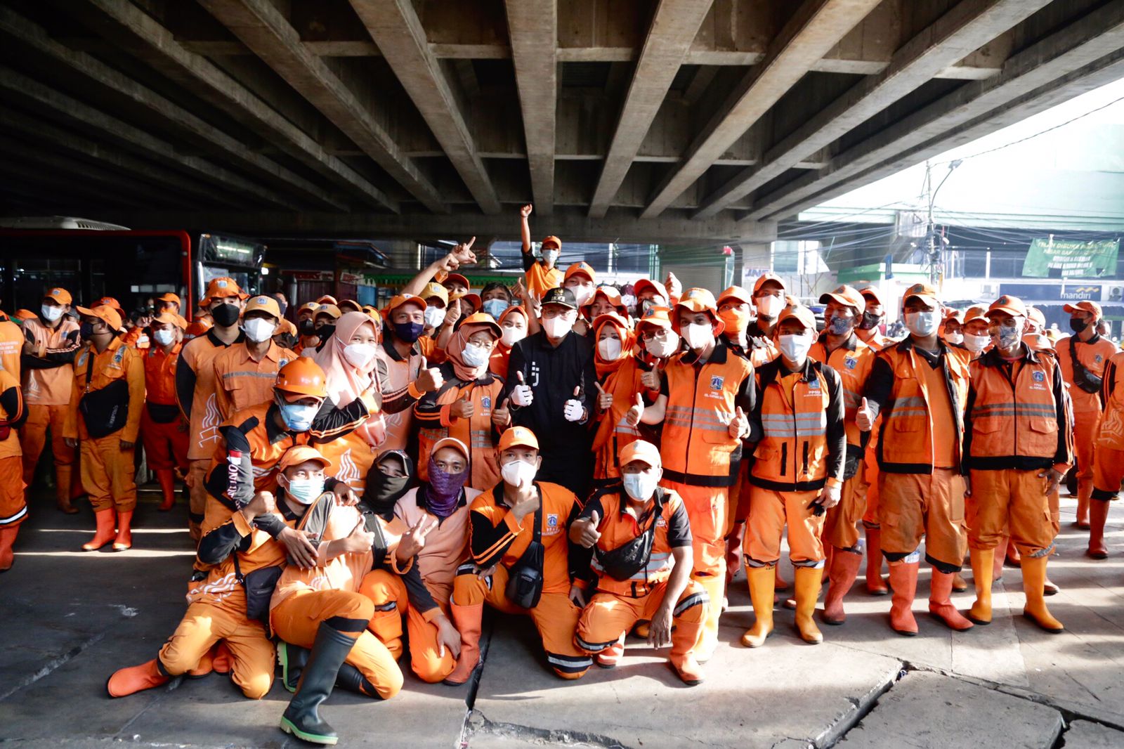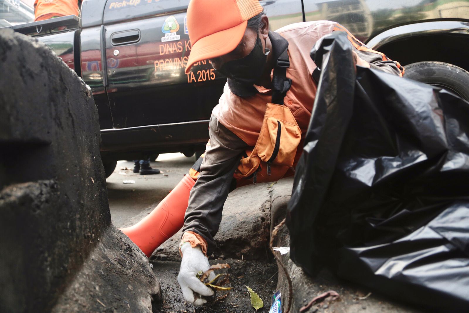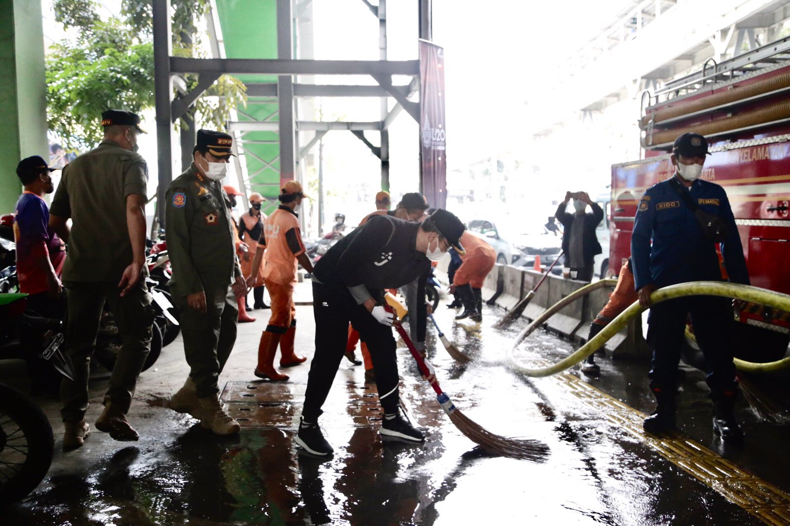 Kerja bakti bersih-bersih pedestrian di seputar kawasan Pasar Tanah Abang