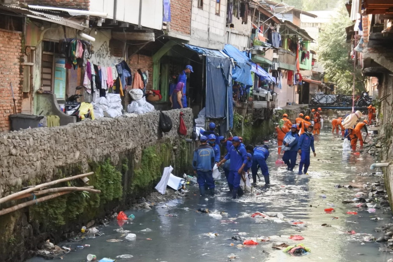 Kegiatan kerja bakti gerebek lumpur kembali dilaksanakan di wilayah RW 06, Kelurahan Kampung Bali, Kecamatan Tanah Abang, Minggu (13/3).