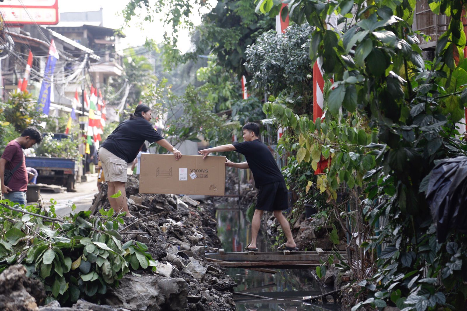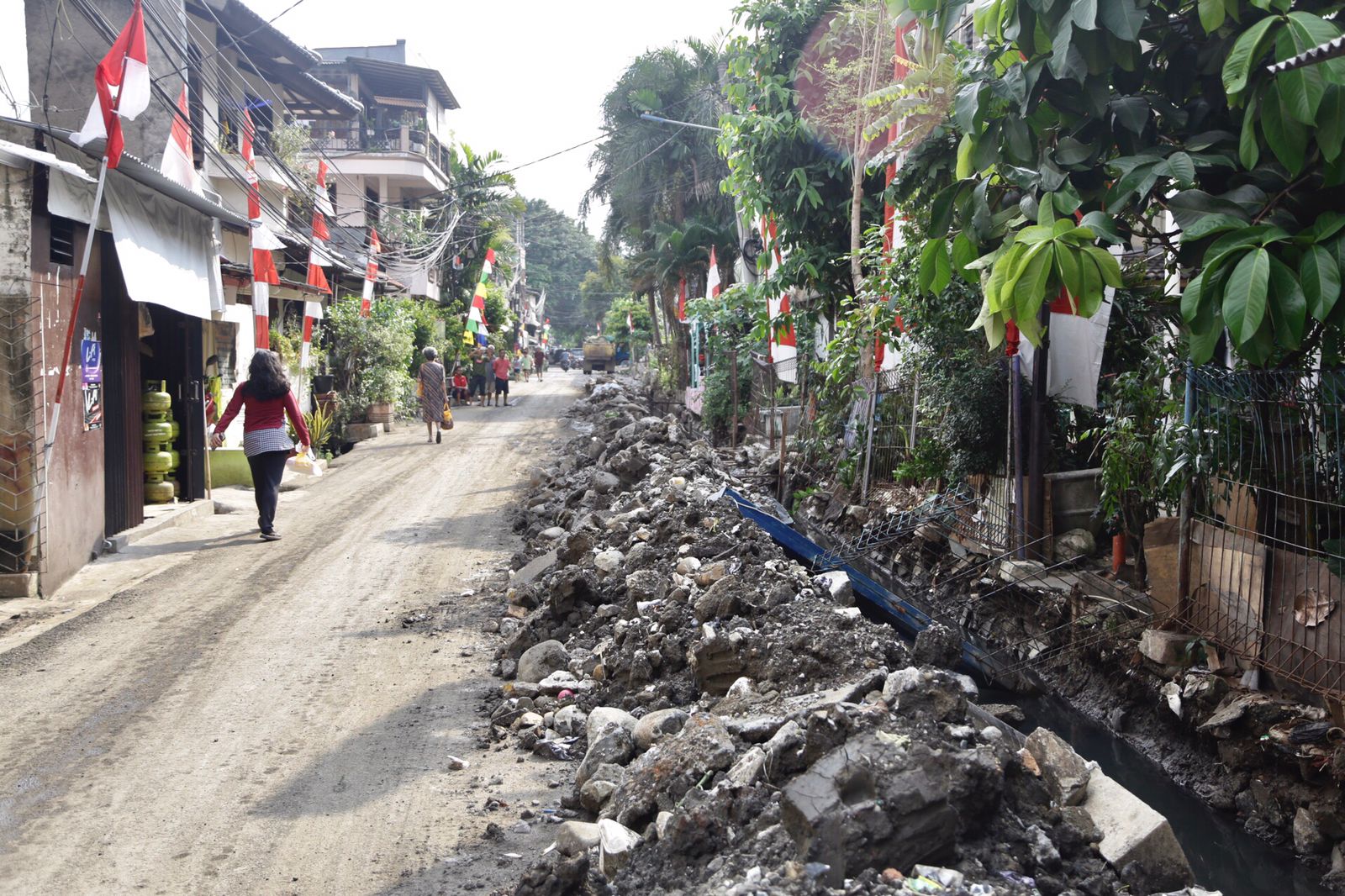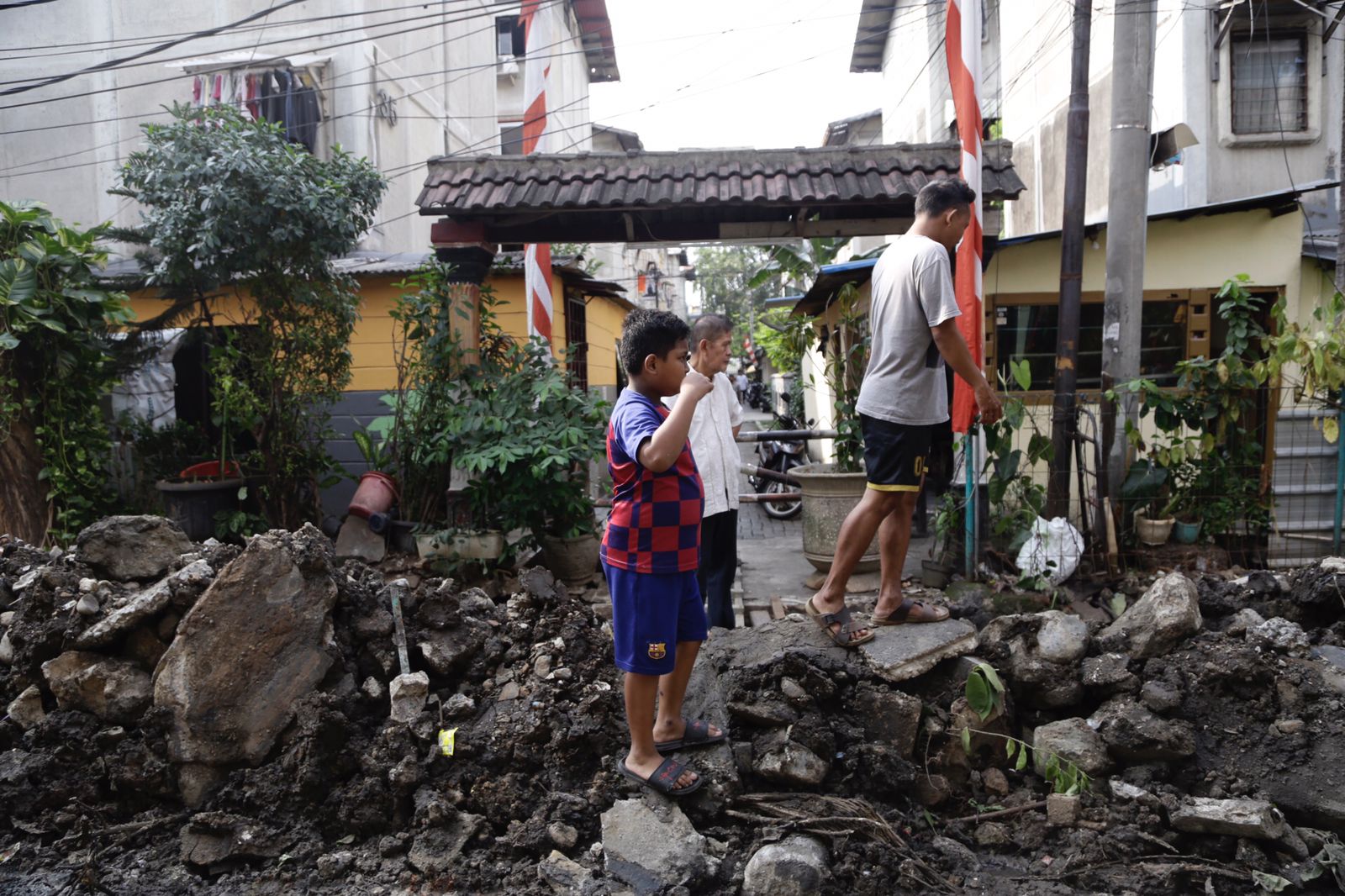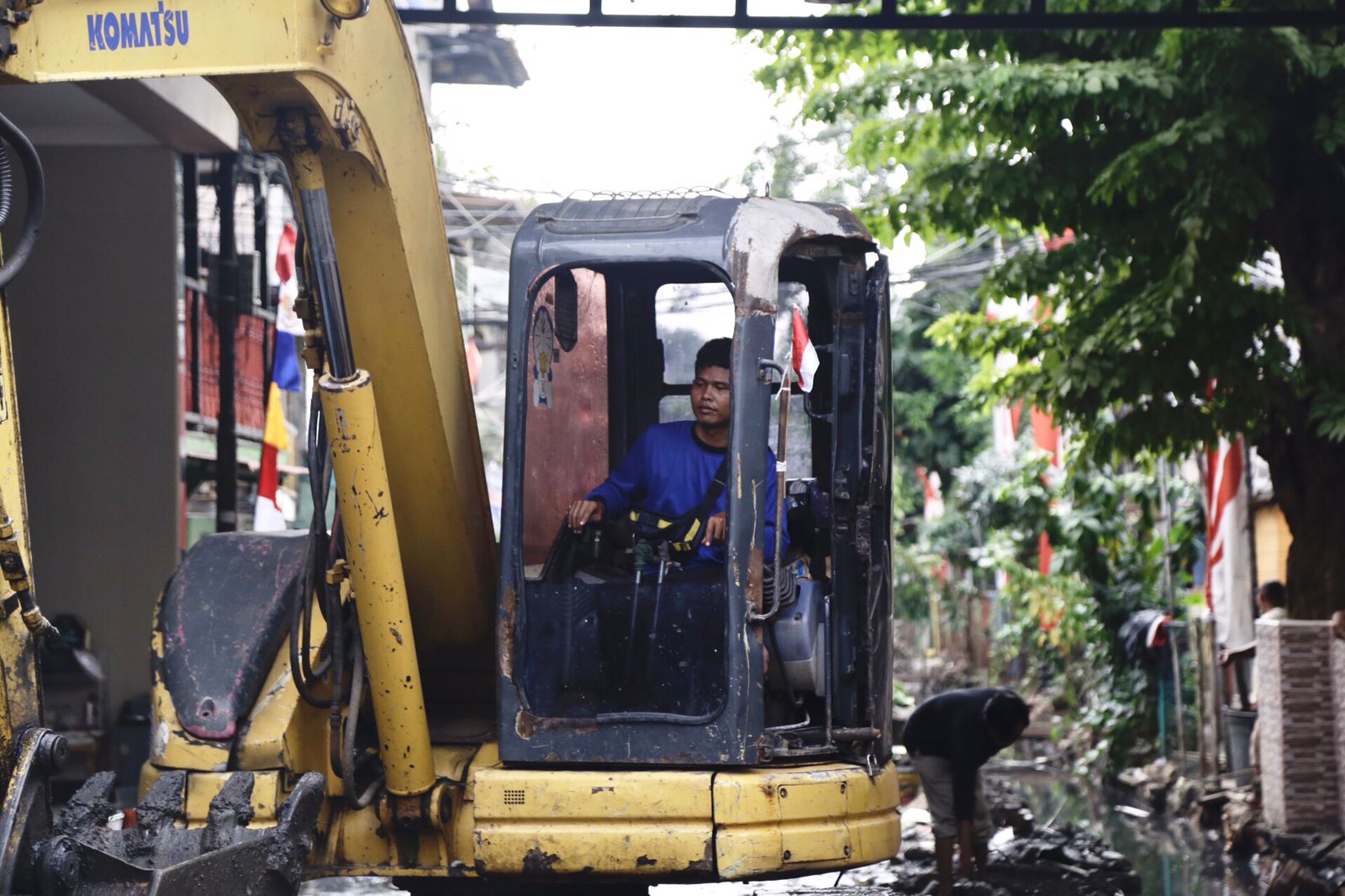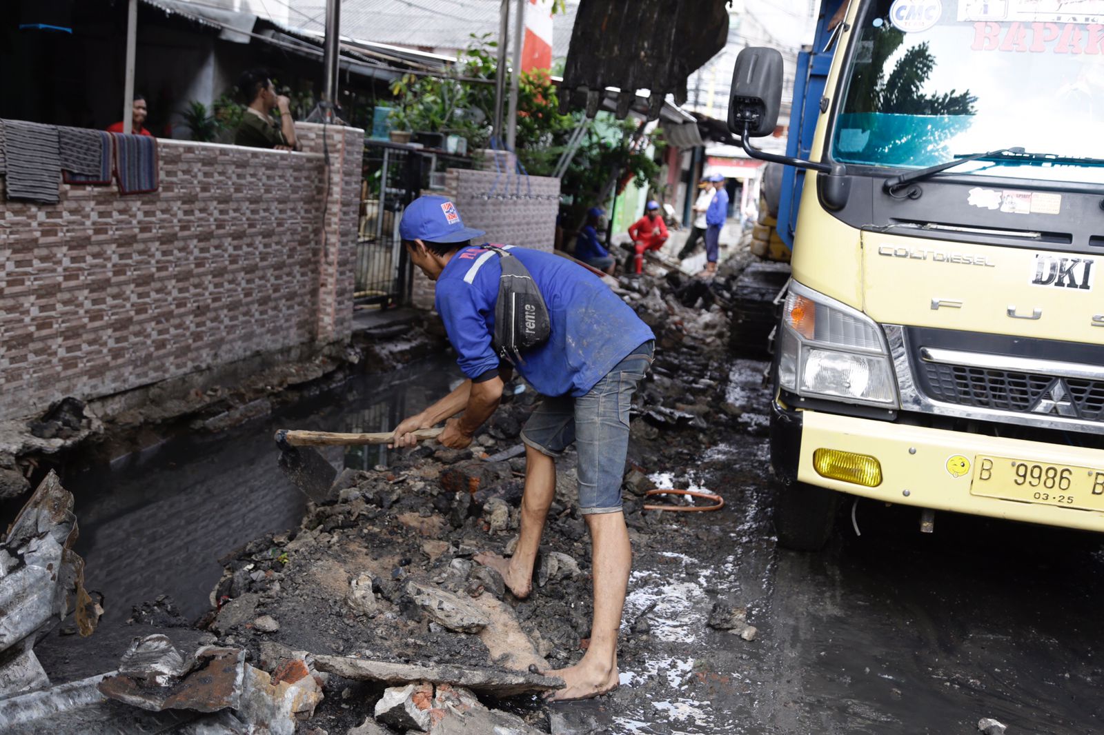 Lurah Kebon Kacang Nani Suryani meninjau normalisasi saluran air di Jalan Kebon Kacang 41, Kecamatan Tanah Abang, Jumat (5/8).