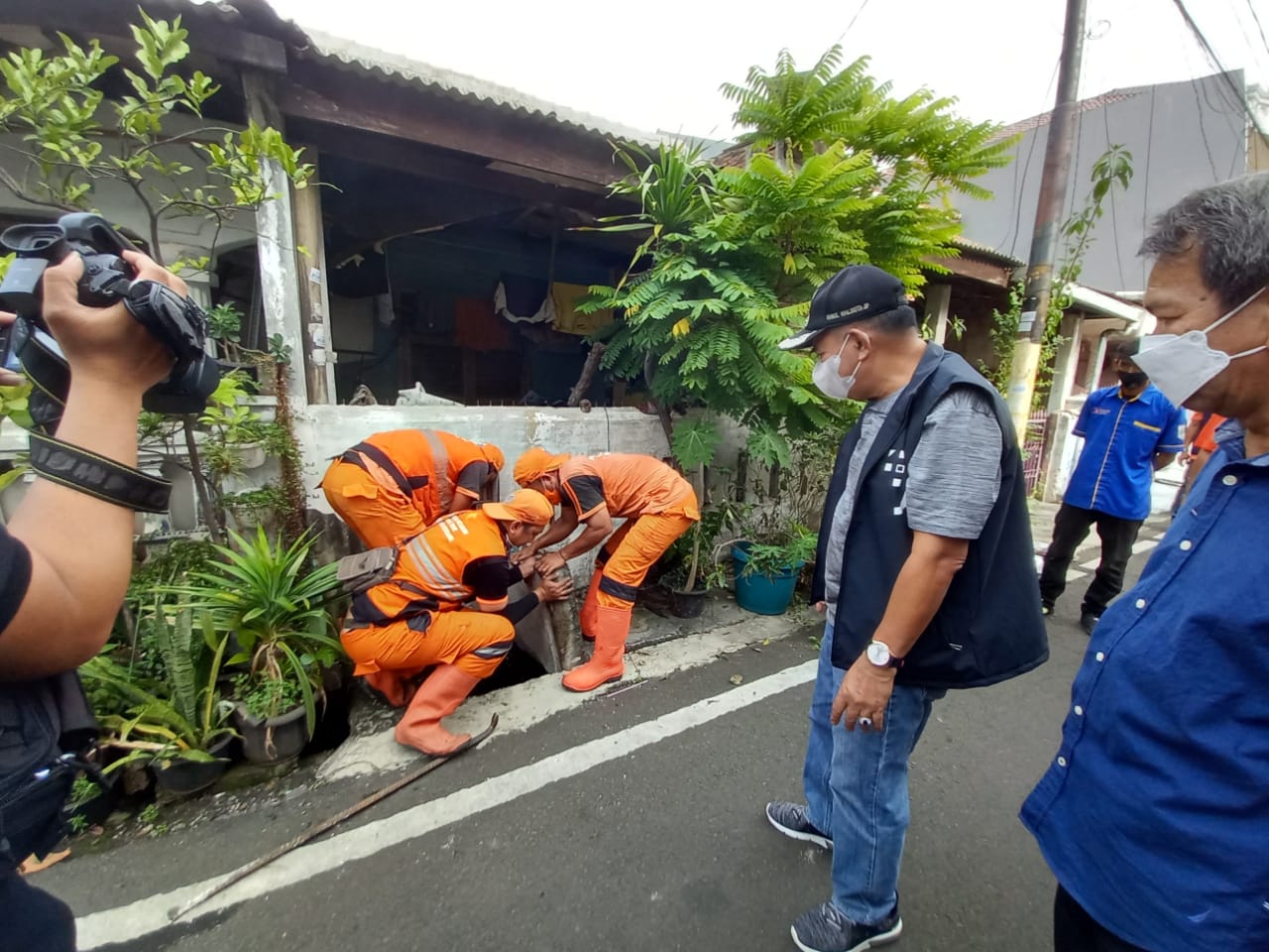 Wakil Wali Kota Jakarta Pusat Irwandi memonitoring gerebek lumpur yang dilakukan di RW 01 Kelurahan Serdang, Kecamatan Kemayoran, Jakarta Pusat, minggu(9/1).