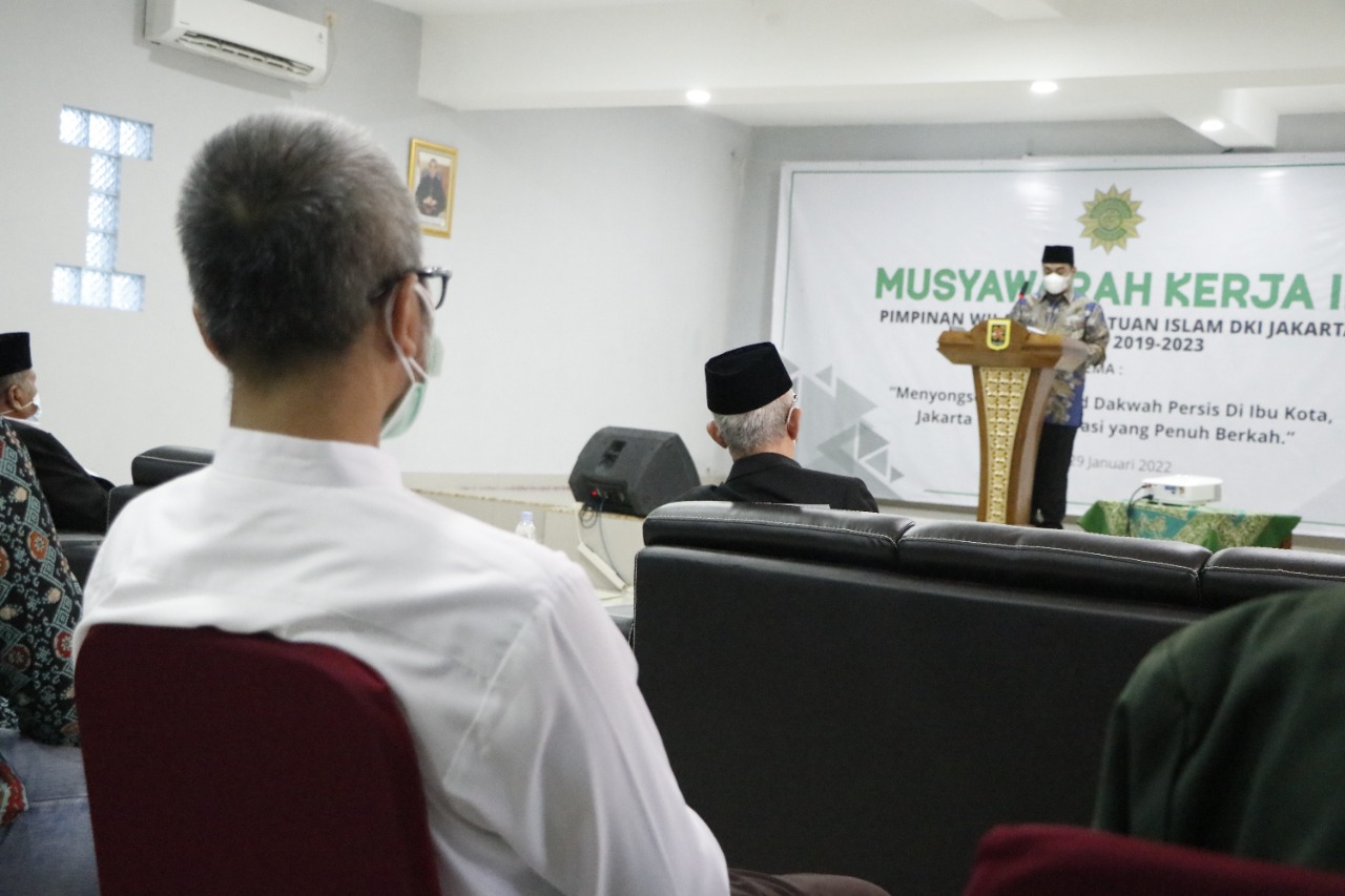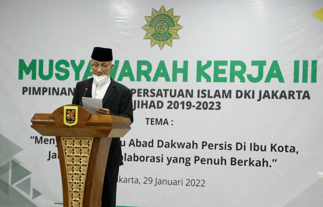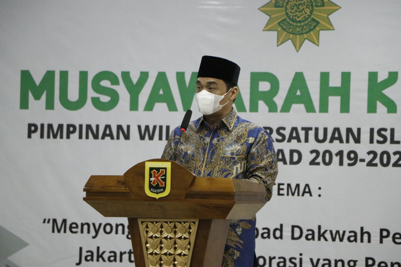 Wali Kota Administrasi Jakarta Pusat, Dhany Sukma mendampingi Wakil Gubernur DKI Jakarta, Ahmad Riza Patria dalam Musyawarah ke III Pimpinan Wilayah Persatuan Islam (Persis) DKI Jakarta di Yayasan Perguruan Ksatria 51, Kelurahan Cempaka Putih Barat, Kecamatan Cempaka Putih, Sabtu (29/1).
