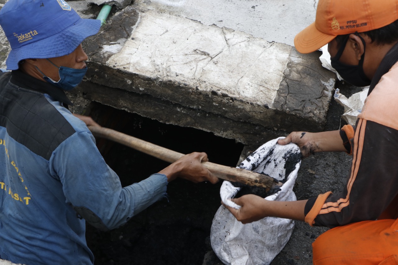 Pelaksanaan bakti gerebek lumpur di RW 03 Kelurahan Petojo Selatan