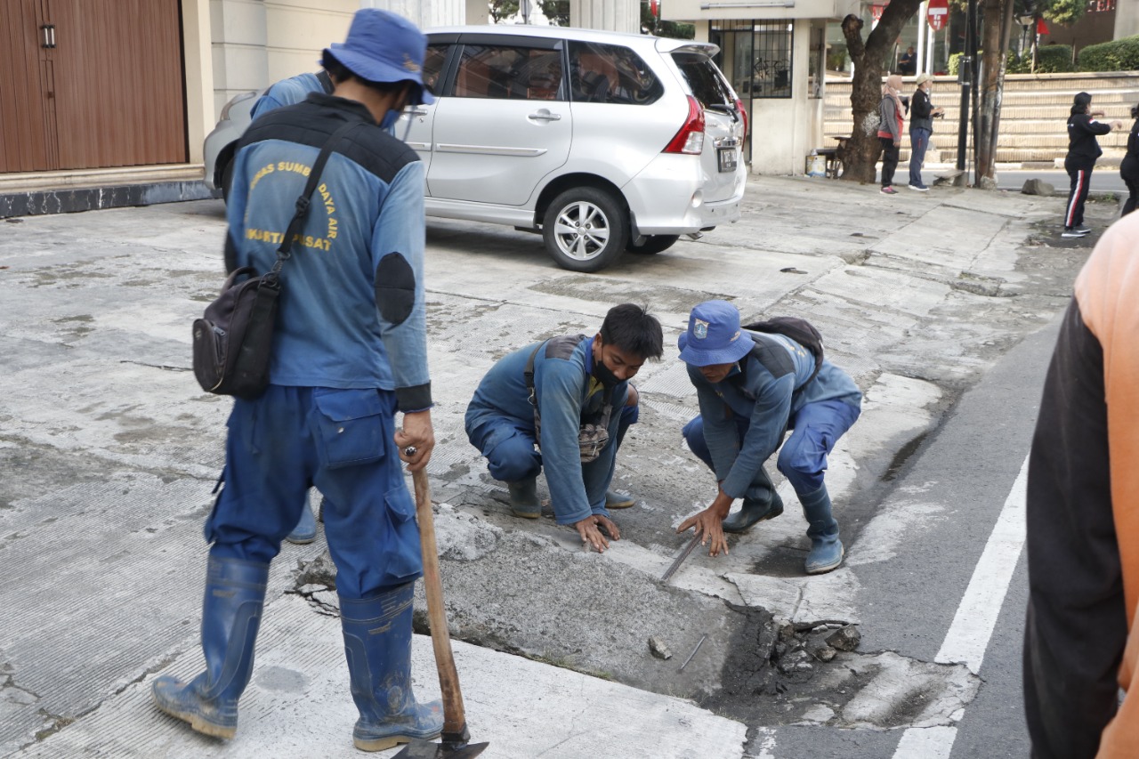 Sekretaris Camat Gambir Eddy Suprianto meninjau pelaksanaan bakti gerebek lumpur di RW 03 Kelurahan Petojo Selatan, Kecamatan Gambir, Minggu (7/8) pagi.